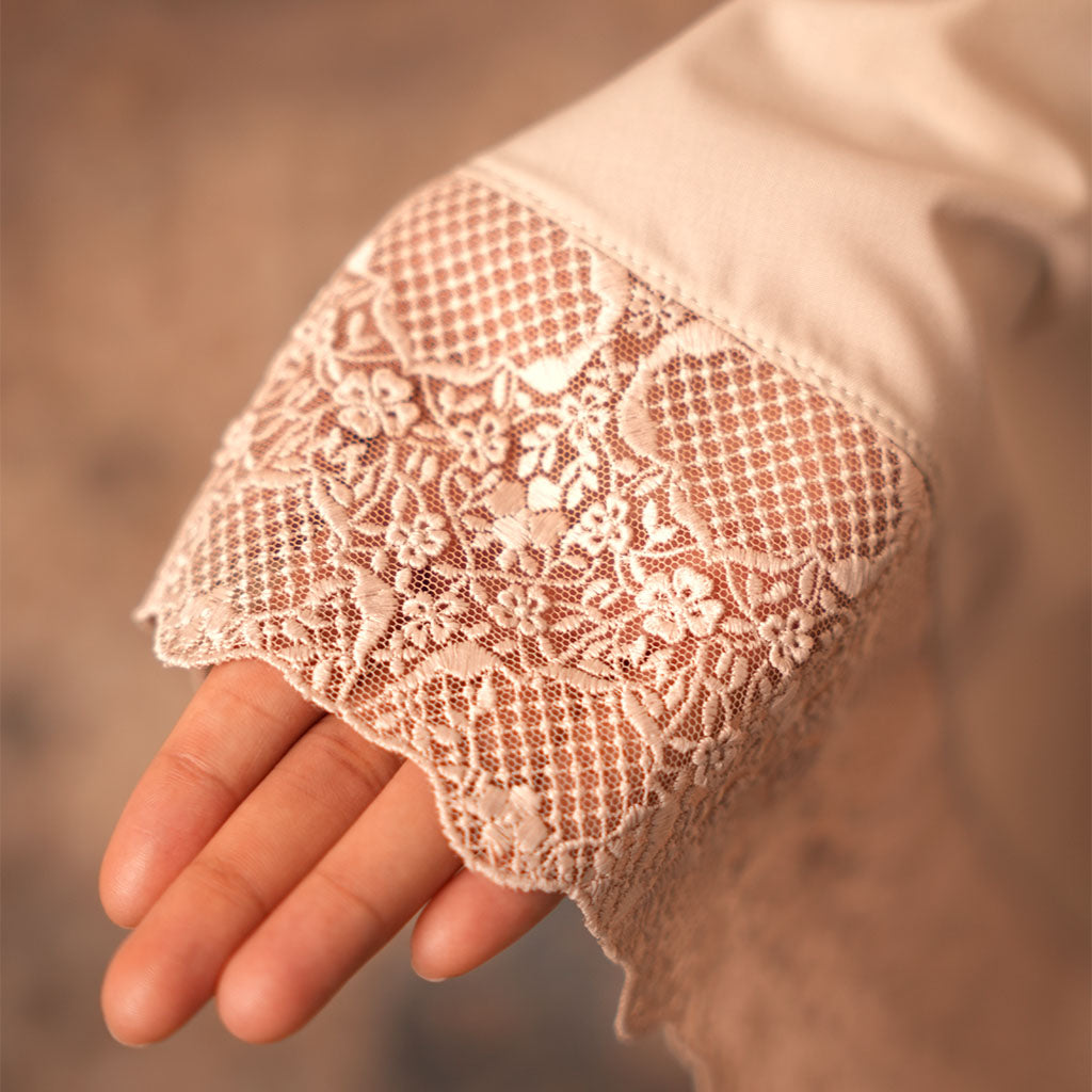 Adorned with Guipure lace inspired by the Lines of Elegance, bringing a refined, seamless finish that elevates your prayerwear.