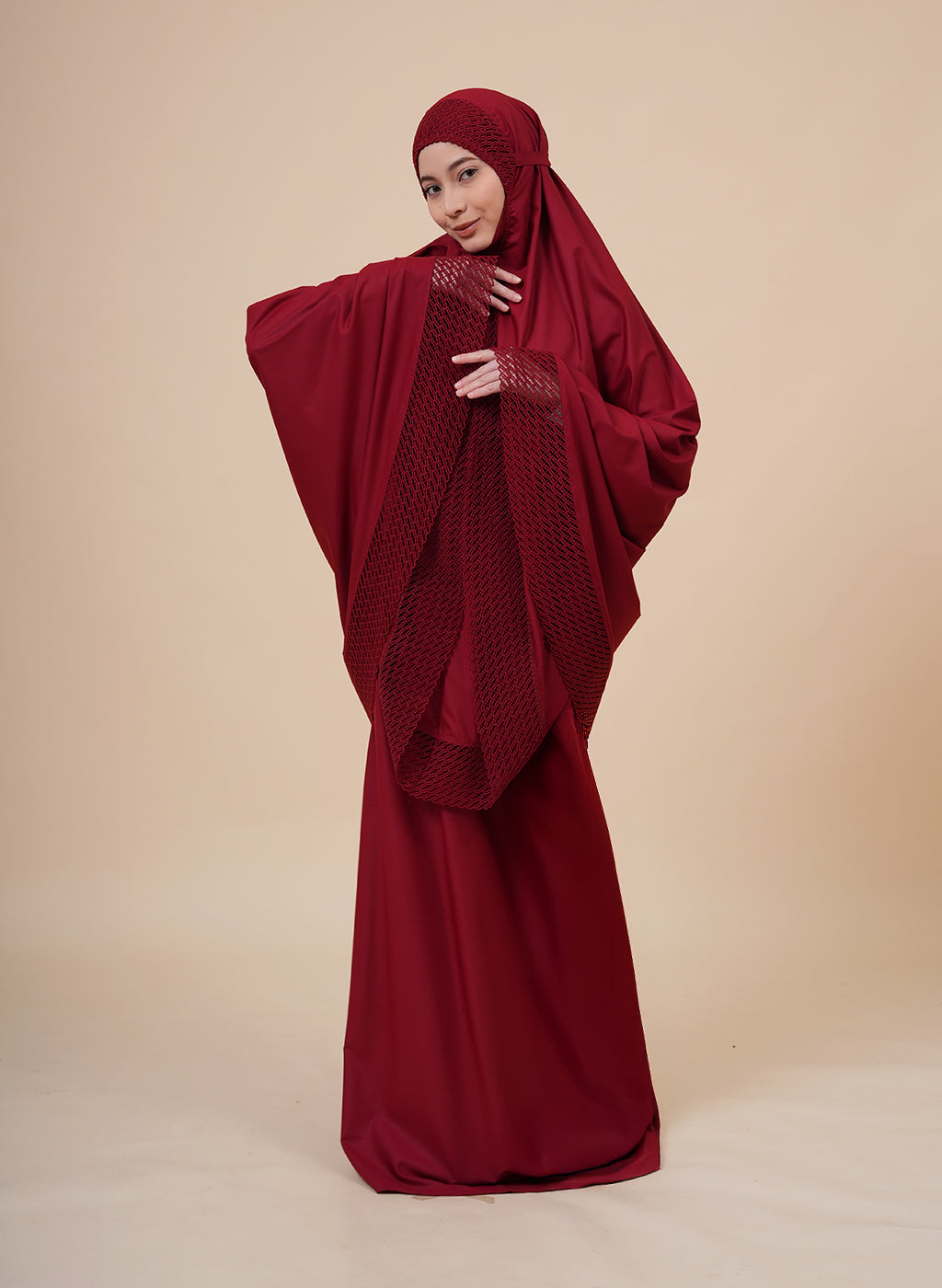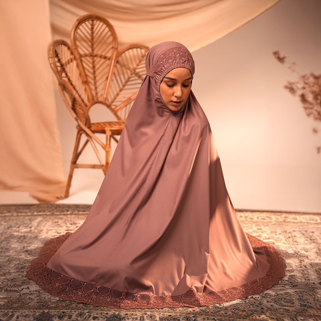 Modish Ashley is delicately embroidered with exquisite guipure lace, featuring raised, detailed patterns that bring out a refined, feminine charm. Designed for elegance and comfort, Ashley is a timeless piece that enriches every prayer moment with grace.