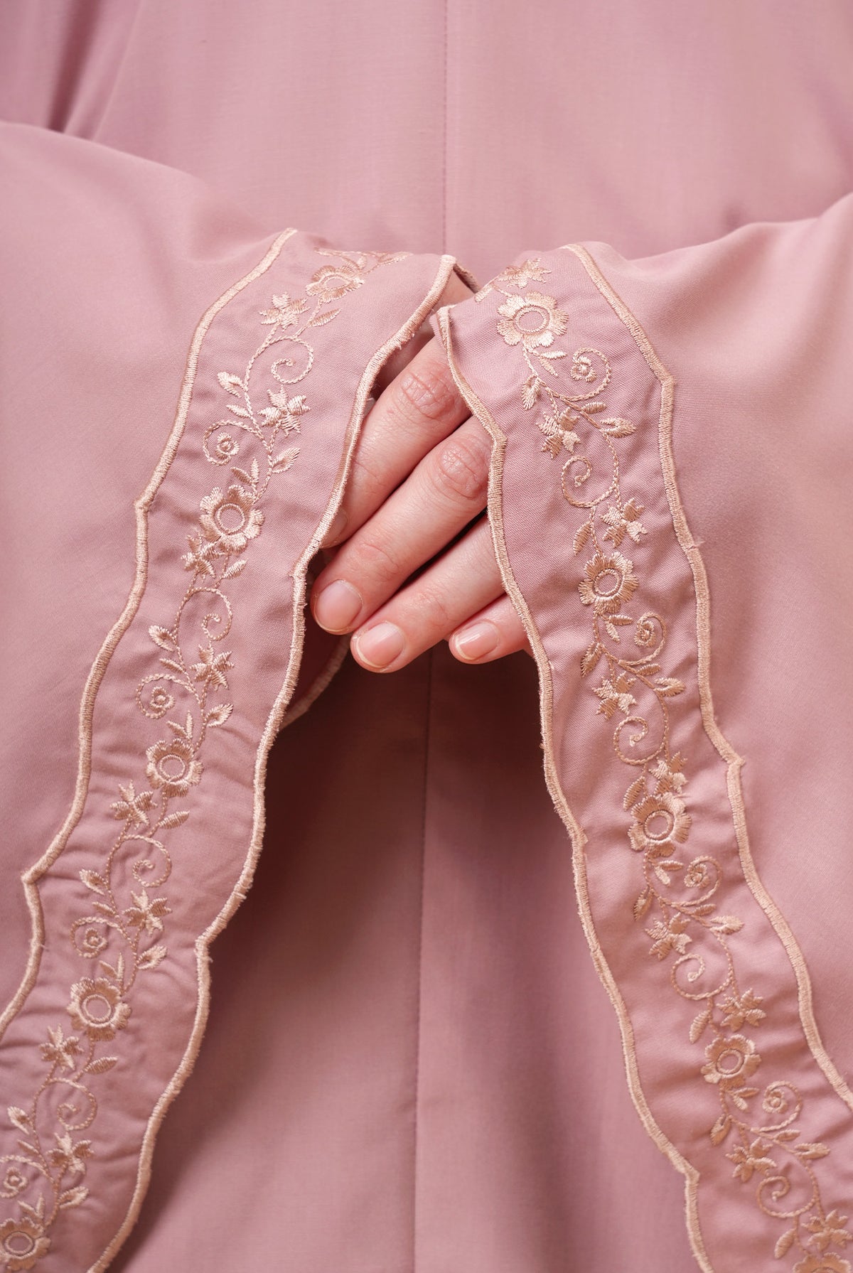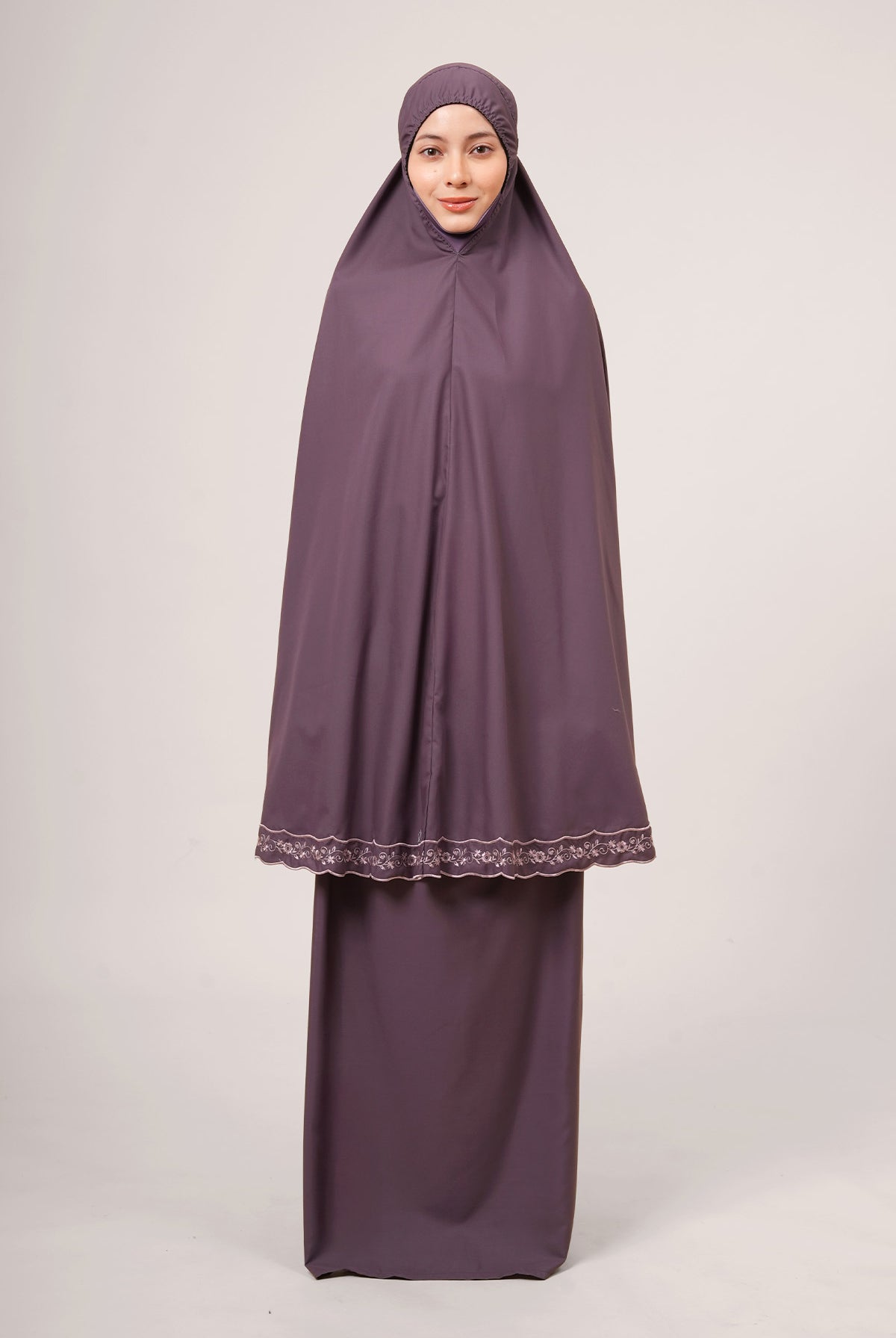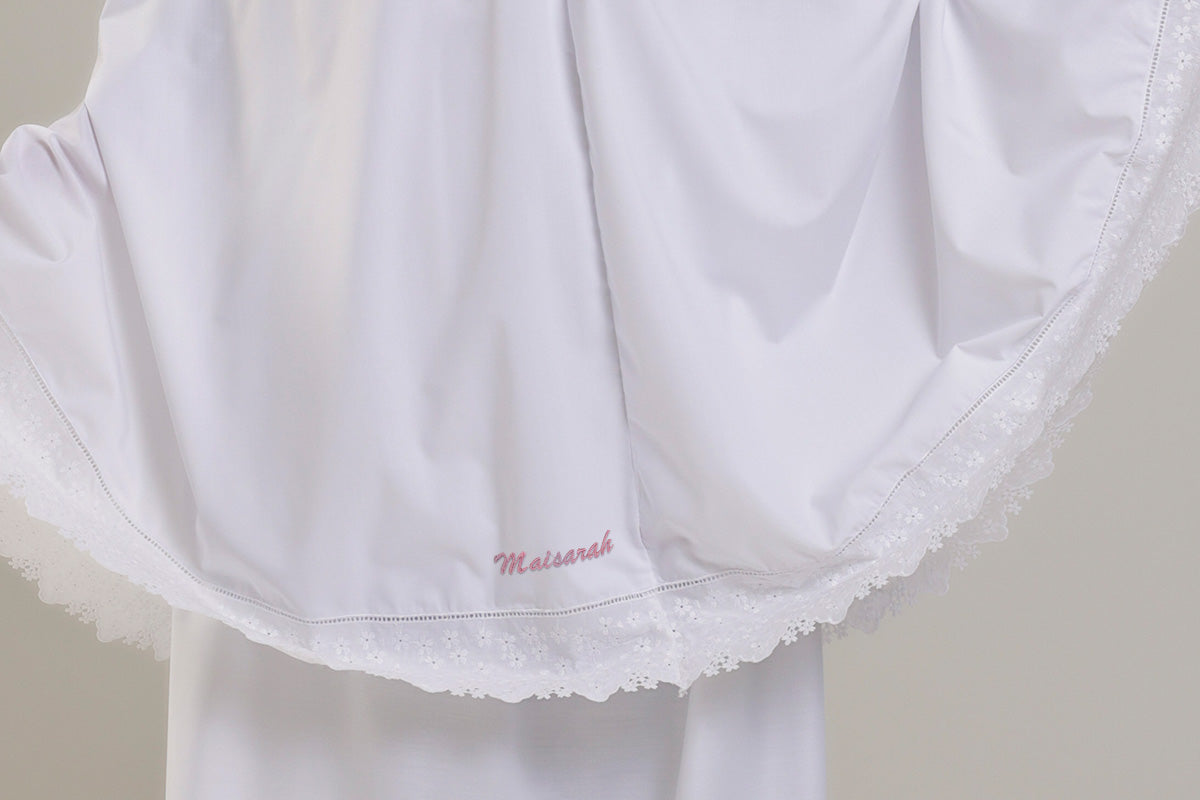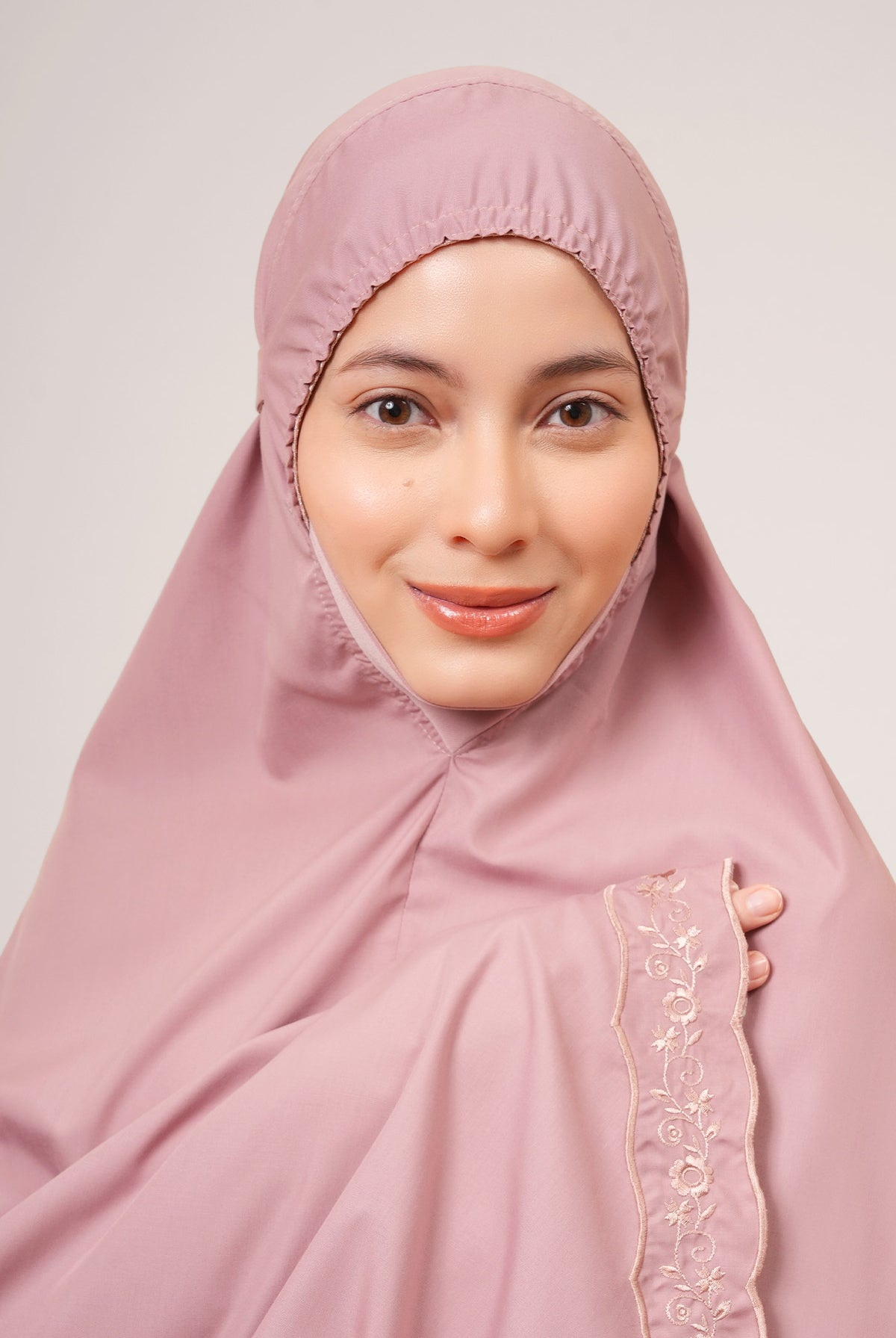 Crafted from the cool and breathable KUF fabric, the Signature Sakura telekung features intricate cherry blossom embroidery on a combination of cotton and guipure lace