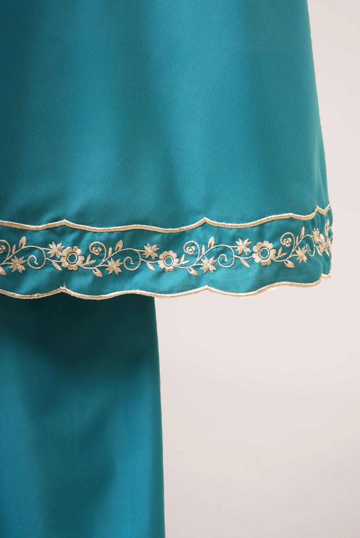 Made from Khadijah Basic Poplin, this piece feels cool and breathable with a soft, cotton-like touch. It features timeless Mughal-inspired lace and finely embroidered joins.