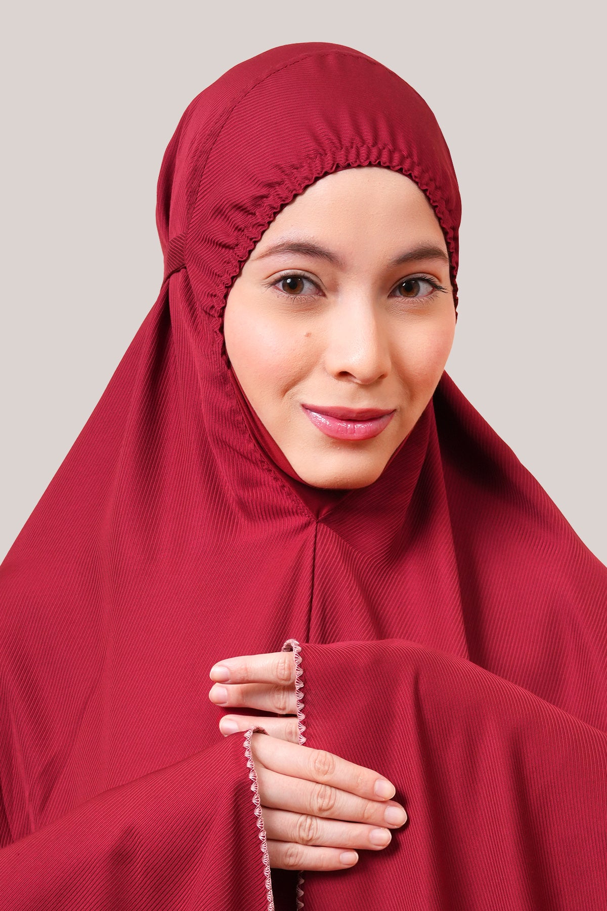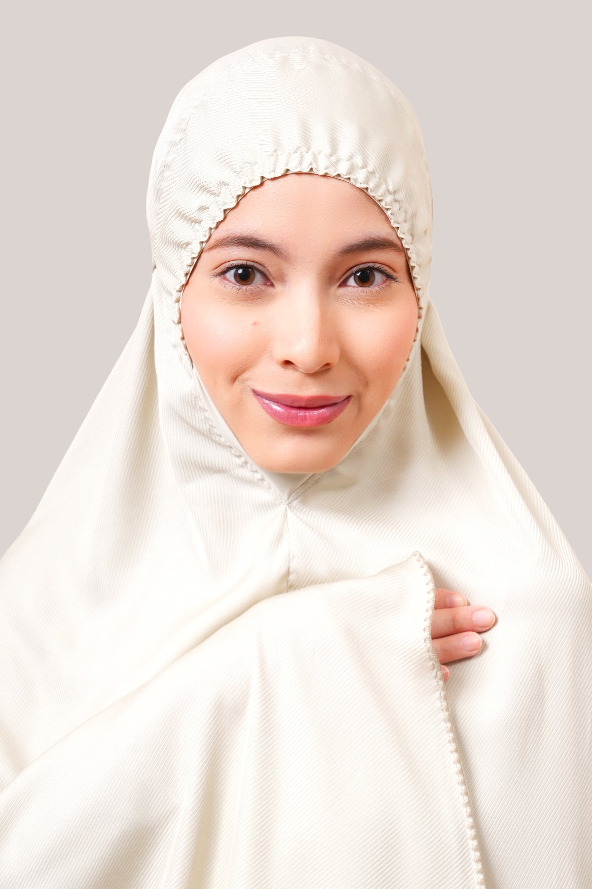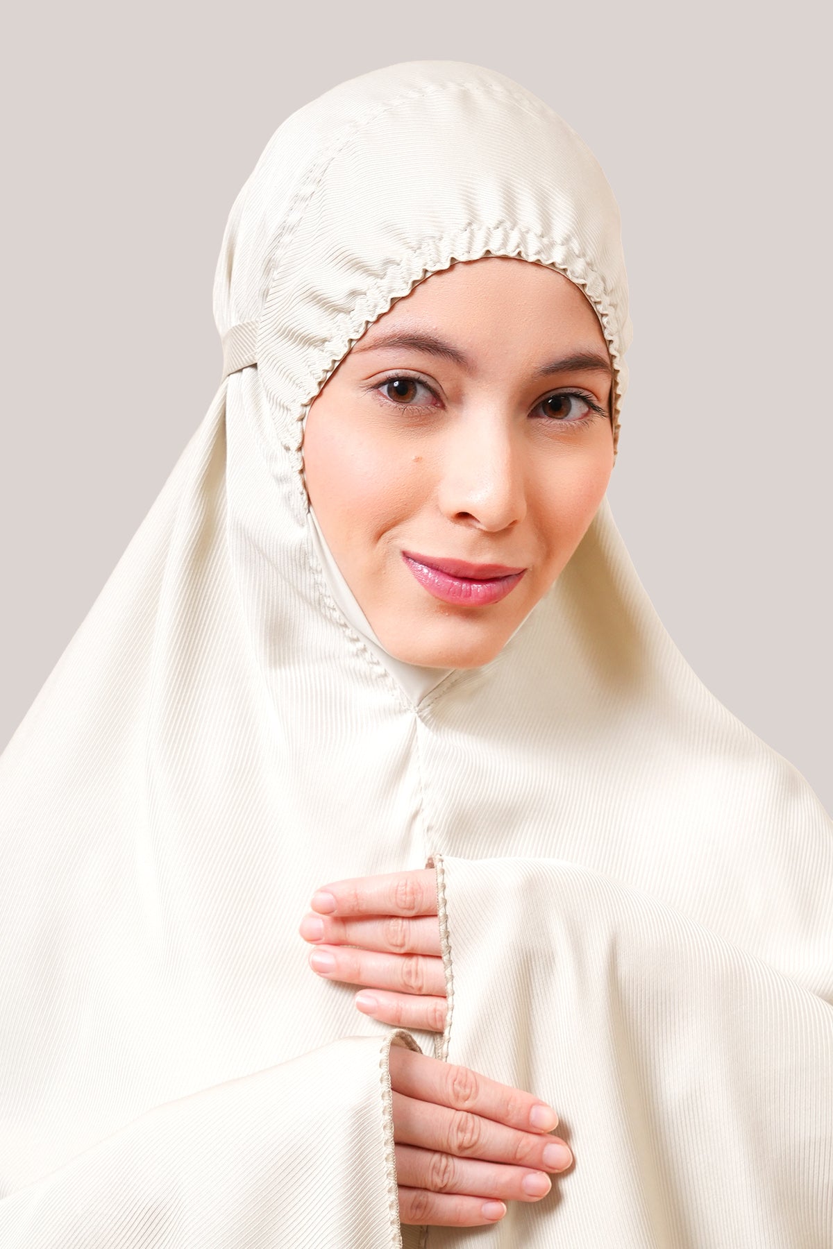 Made from KUF fabric, Flair Sabira delivers breathable softness and lasting comfort. Its Harmony-style face design ensures a secure, gentle fit that stays in place during prayer.