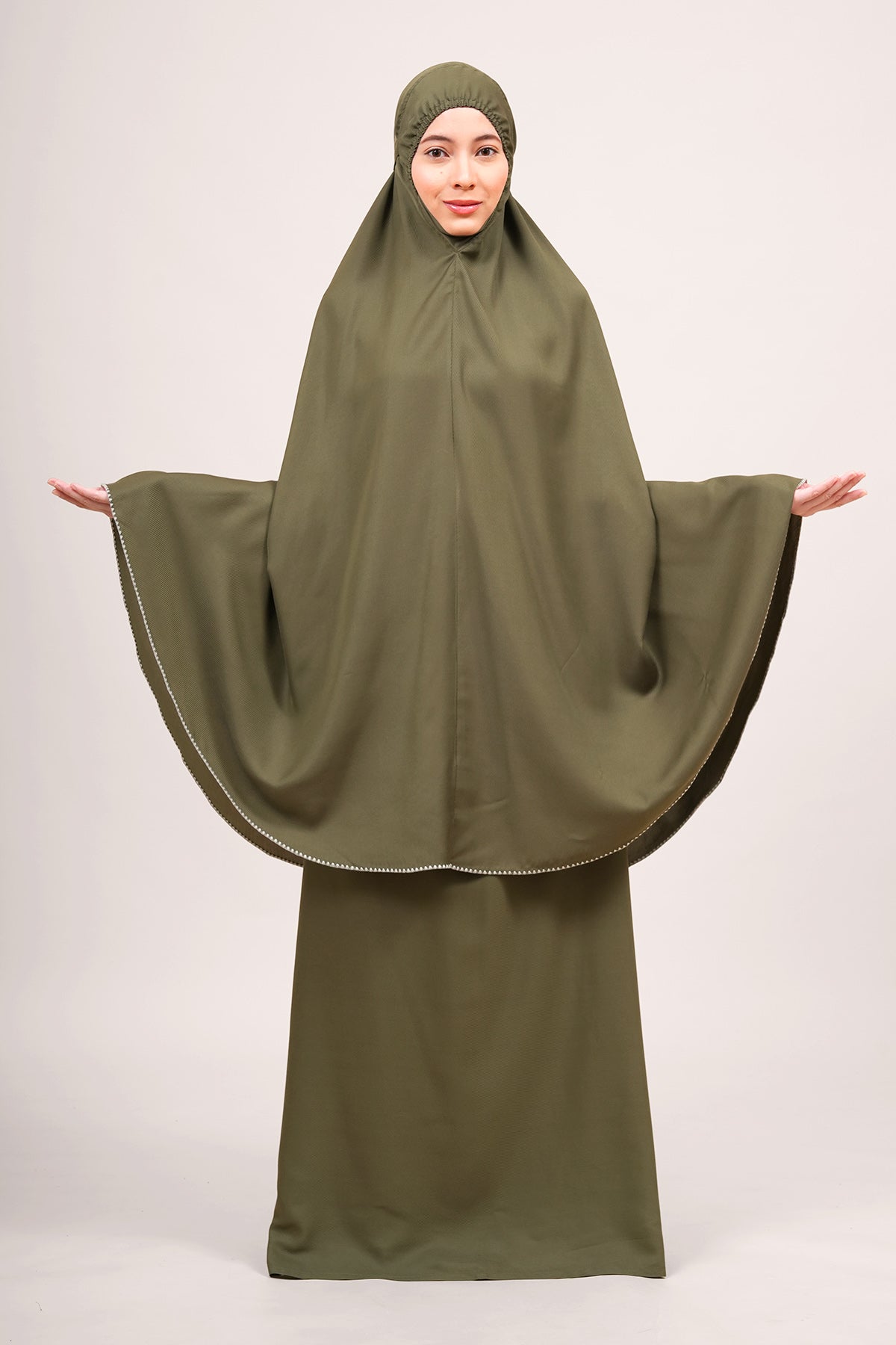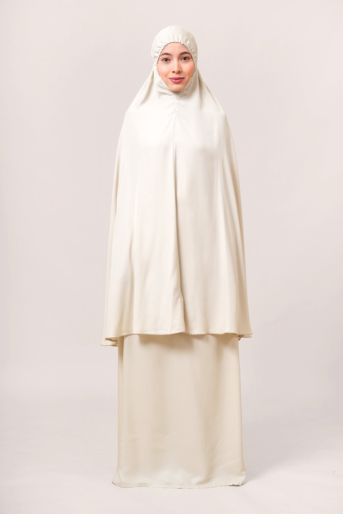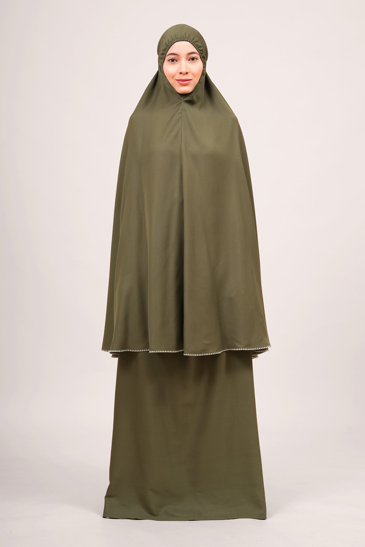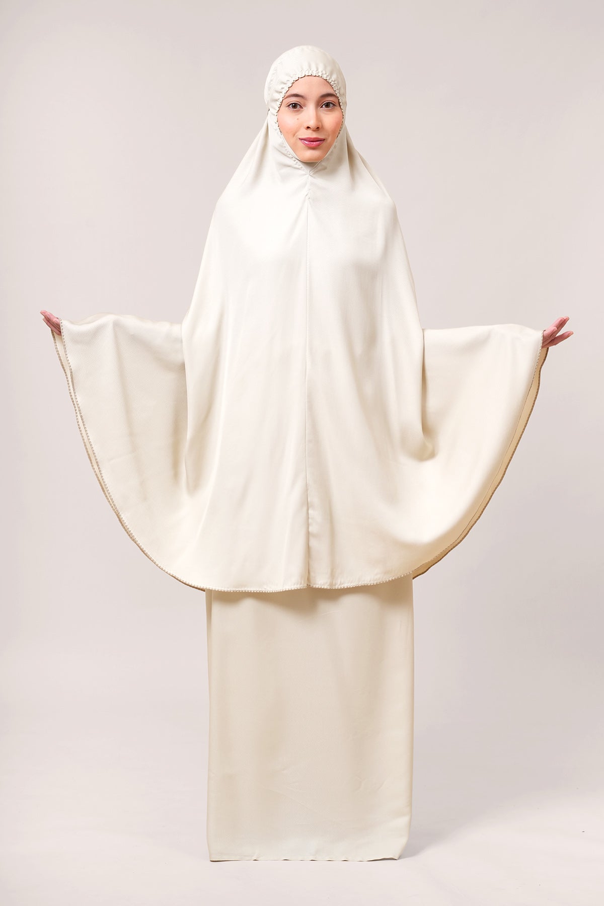 Made from KUF fabric, Flair Sabira delivers breathable softness and lasting comfort. Its Harmony-style face design ensures a secure, gentle fit that stays in place during prayer.