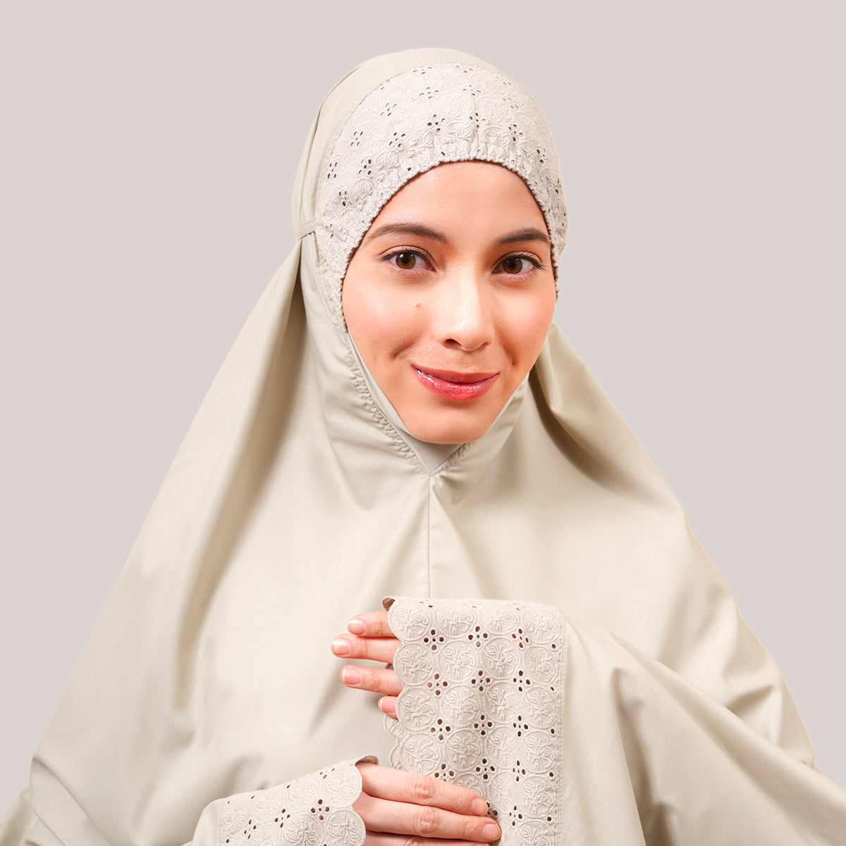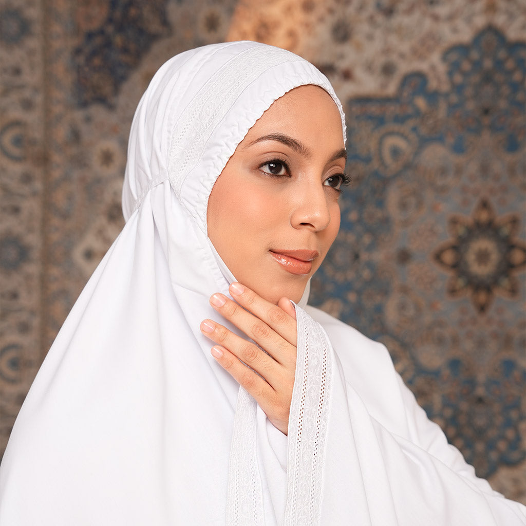 Made for fuller coverage and lasting comfort, Signature Elara Plus features durable stretch Poplin and delicate cotton lace, ensuring ease and elegance for every prayer.