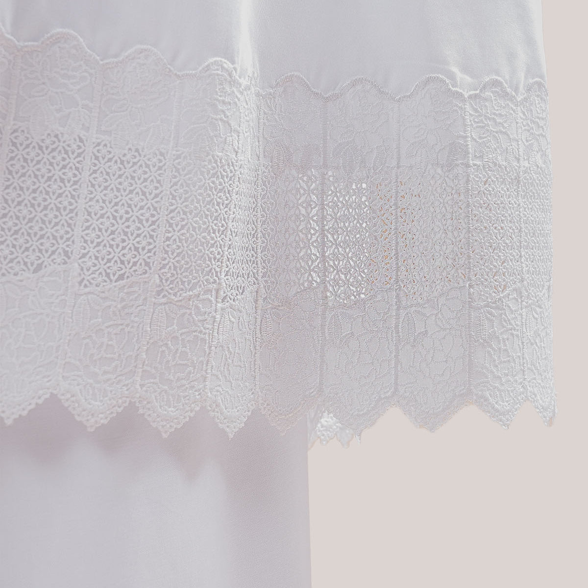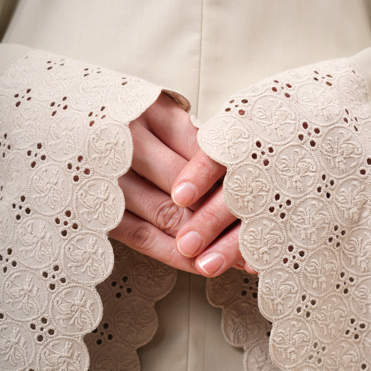 Inspired by Japanese tradition, the combination of Cotton and Guipure Lace gives Kumiko a timeless, elegant edge.