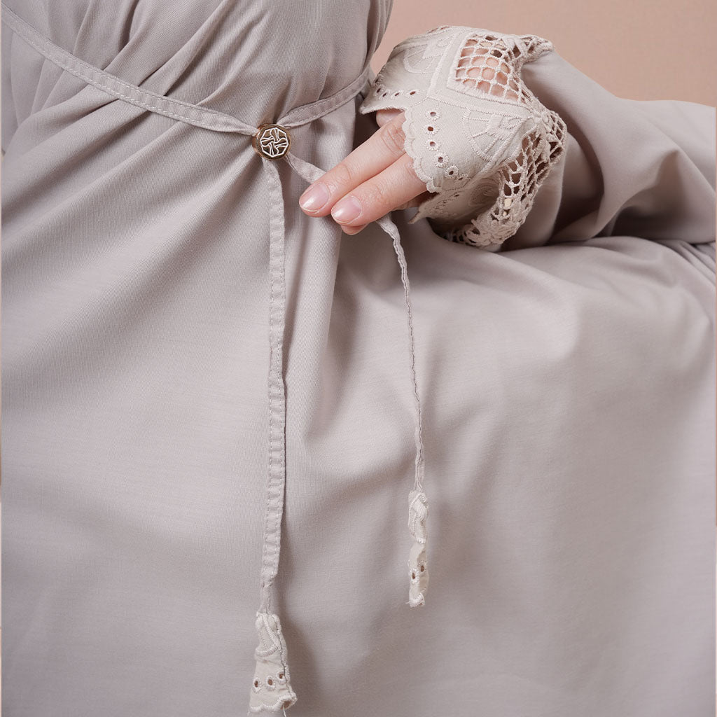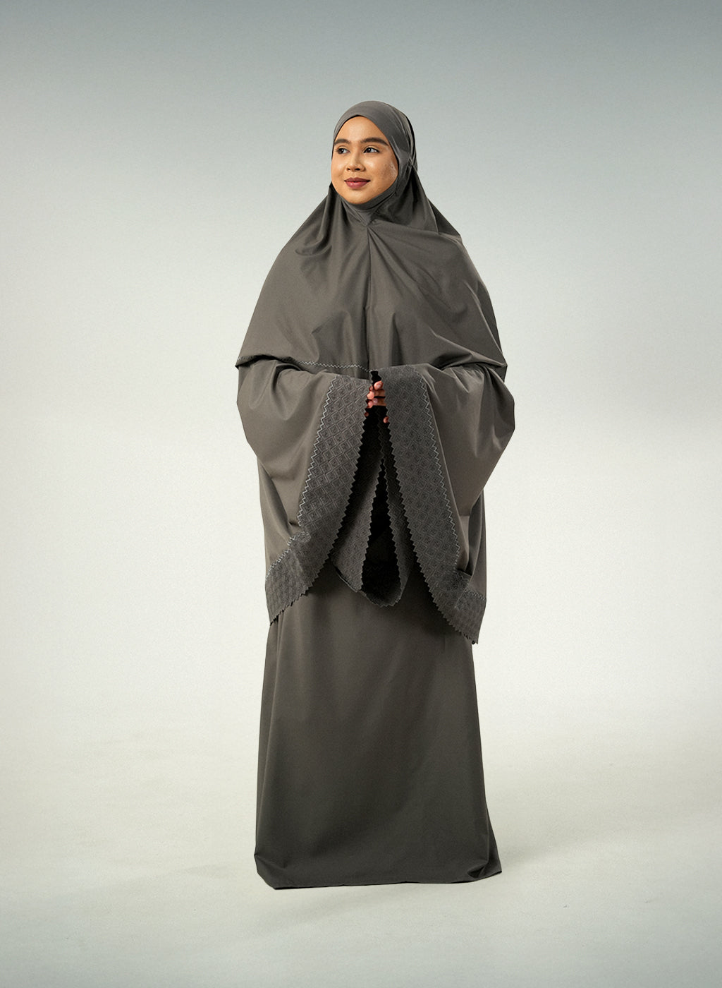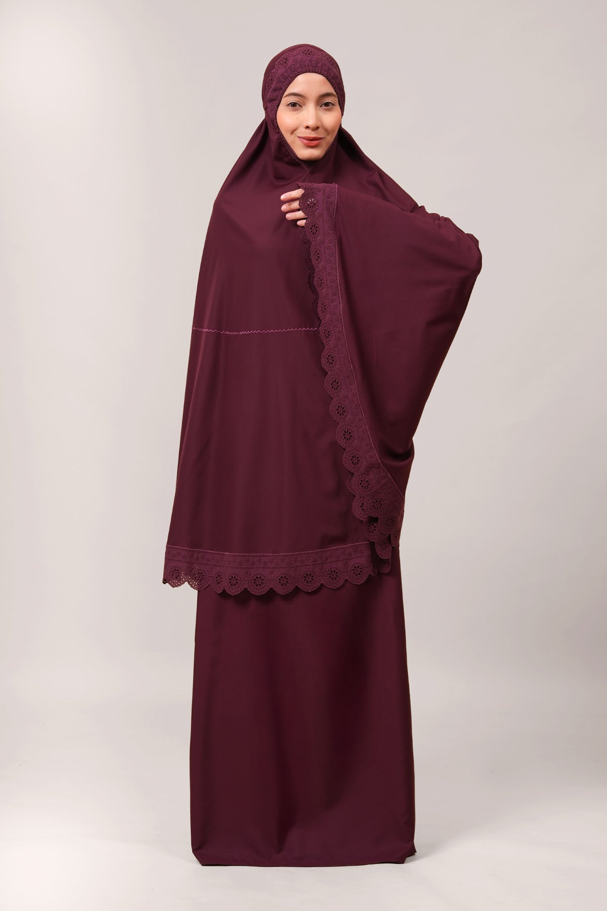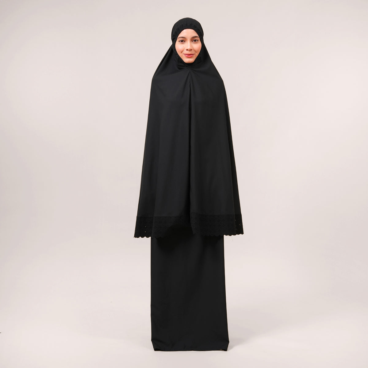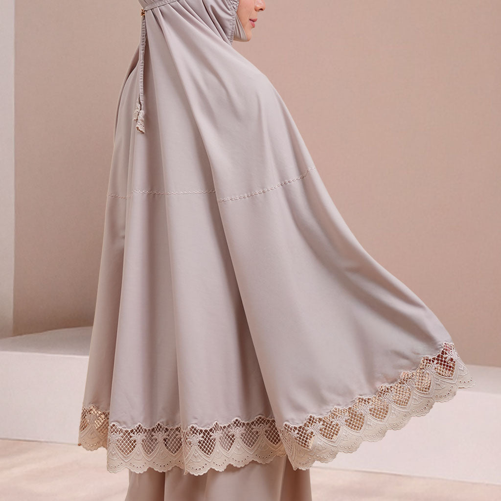 Inspired by the timeless beauty of classic lace, Signature Elara embodies elegance and endurance in every stitch. Featuring durable Signature Poplin that stretches without tearing and retains its vibrant color wash after wash, paired with fine cotton lace detailing sewn with delicate precision. Designed for women who seek grace, resilience, and serenity in every prayer.