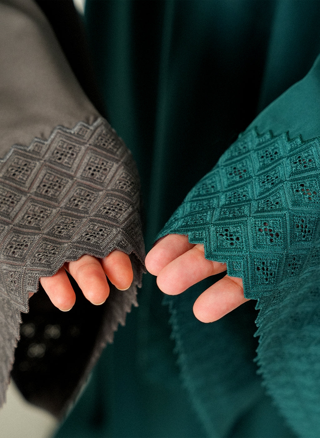 Inspired by the intricate embroidery of Persian heritage, Signature Refa blends the comfort of Khadijah Comfy Flex, long-lasting lace finishing, and breathable Signature Poplin fabric that’s lightweight, quick-dry, and gentle on the skin. Designed for women who value modesty, beauty, and functionality in every prayer.