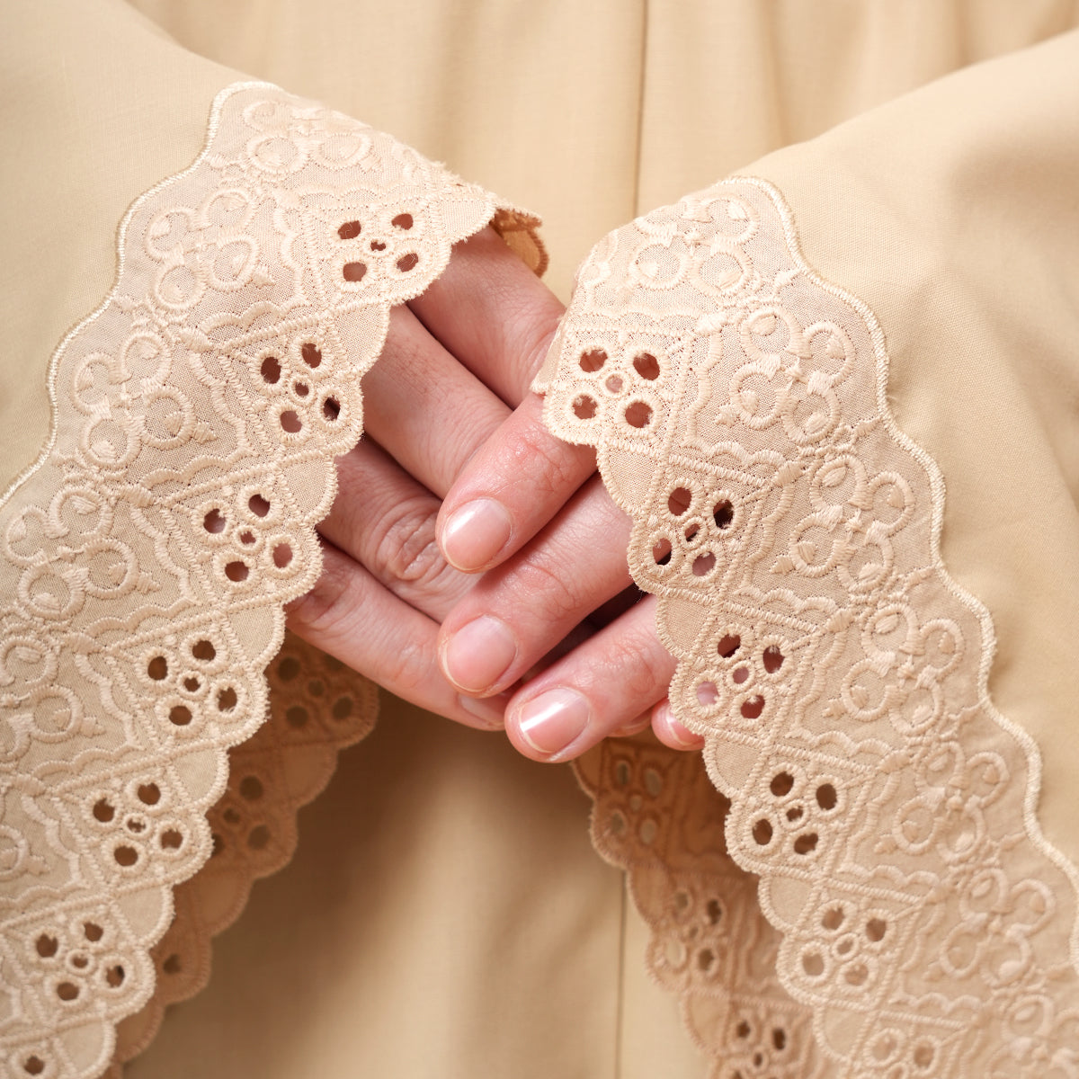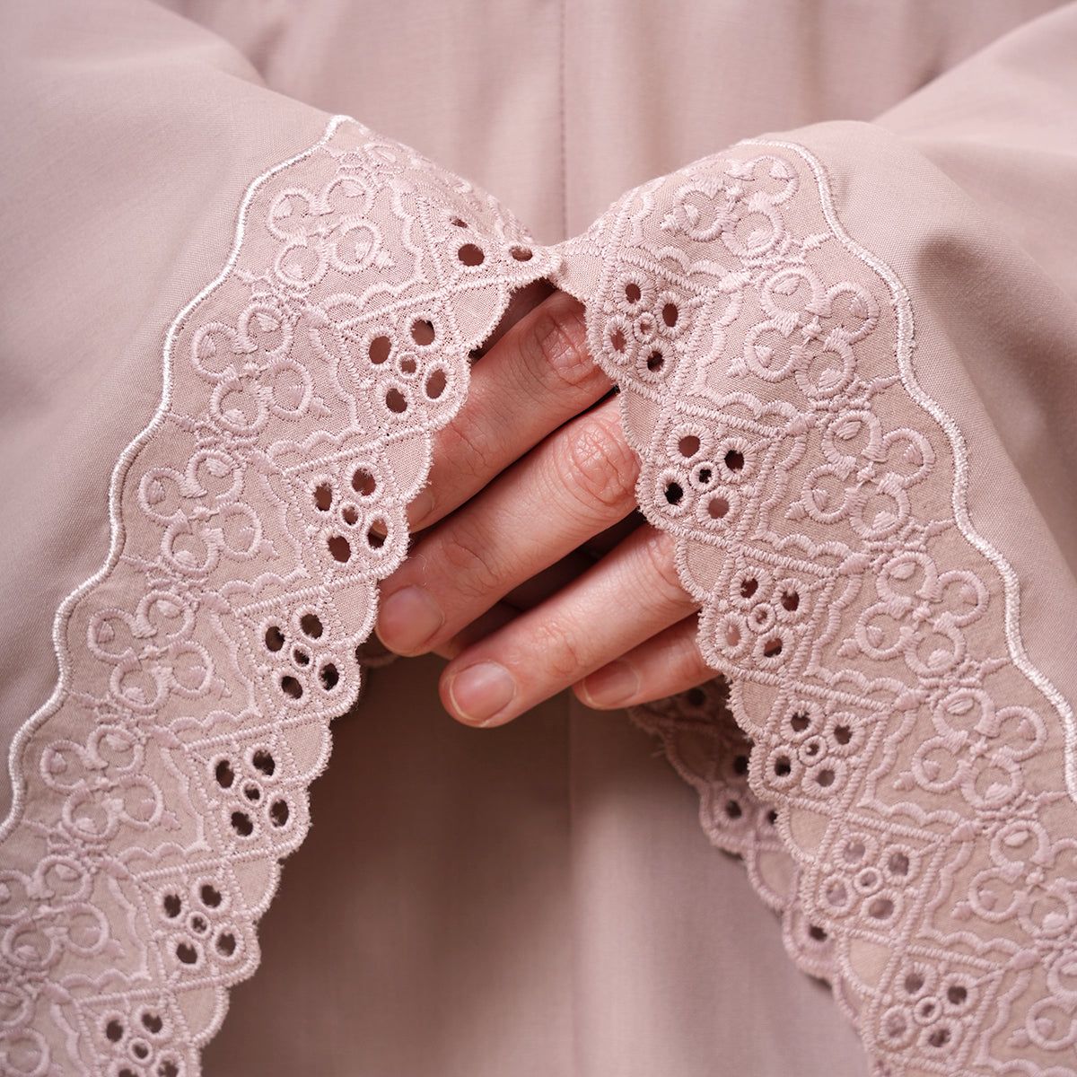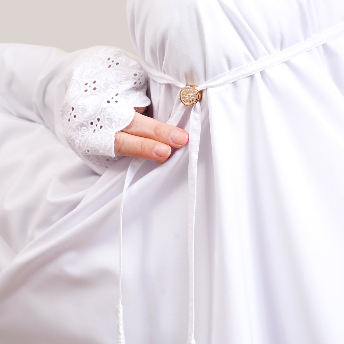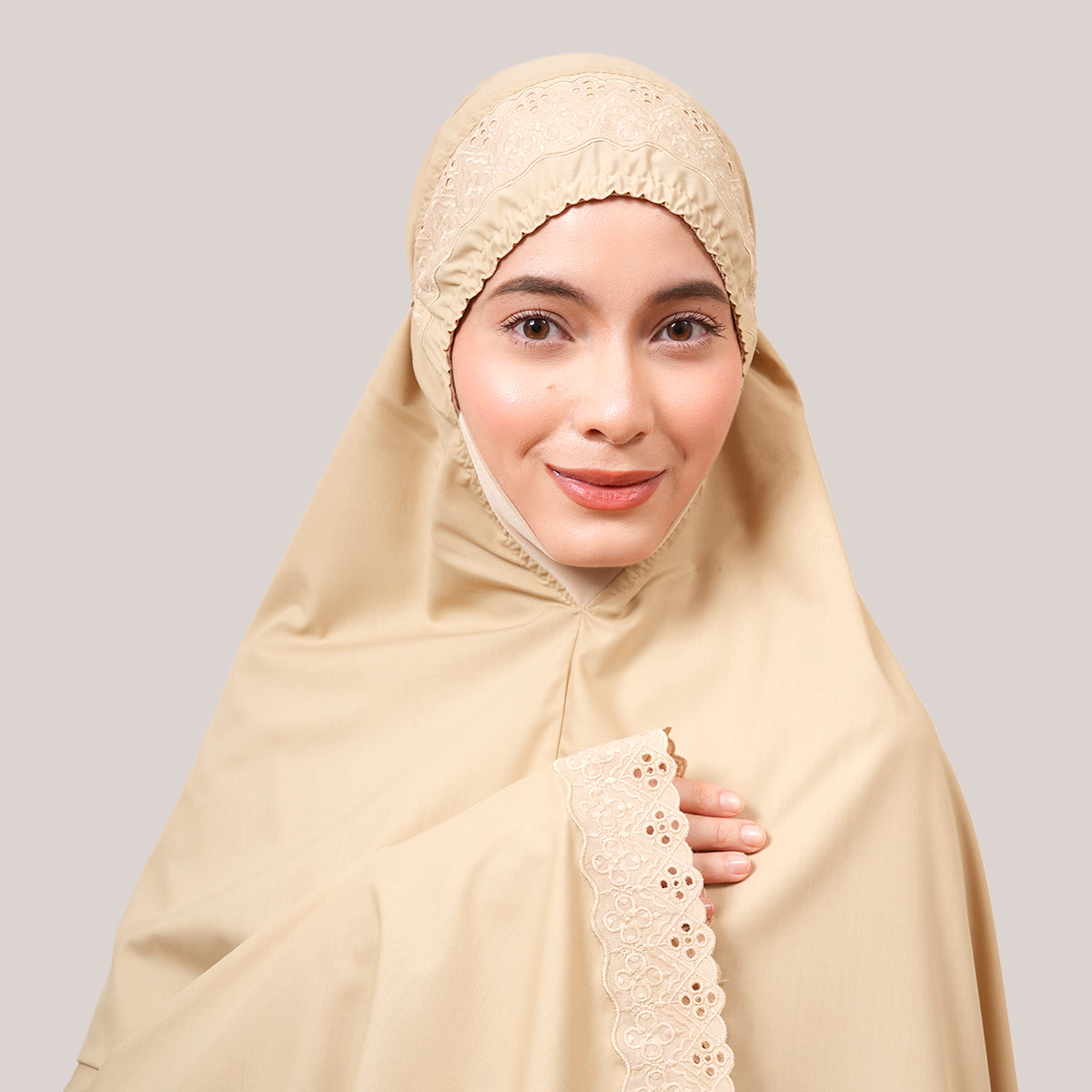 Inspired by the timeless beauty of classic lace, Signature Elara embodies elegance and endurance in every stitch. Featuring durable Signature Poplin that stretches without tearing and retains its vibrant color wash after wash, paired with fine cotton lace detailing sewn with delicate precision. Designed for women who seek grace, resilience, and serenity in every prayer.
