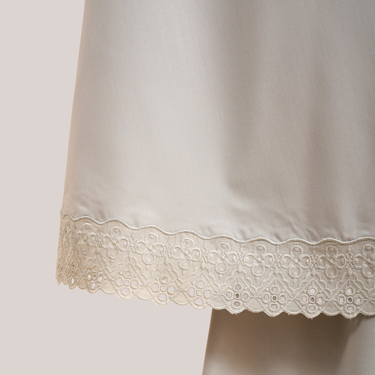 Inspired by delicate cotton lace and timeless floral elegance, this design captures a modern, refined aesthetic. Named “Razia” — meaning queen or leader — it embodies confidence, grace, and quiet charisma. Crafted from Signature Poplin, the fabric is sumptuously soft, wrinkle-resistant, and elegantly structured.