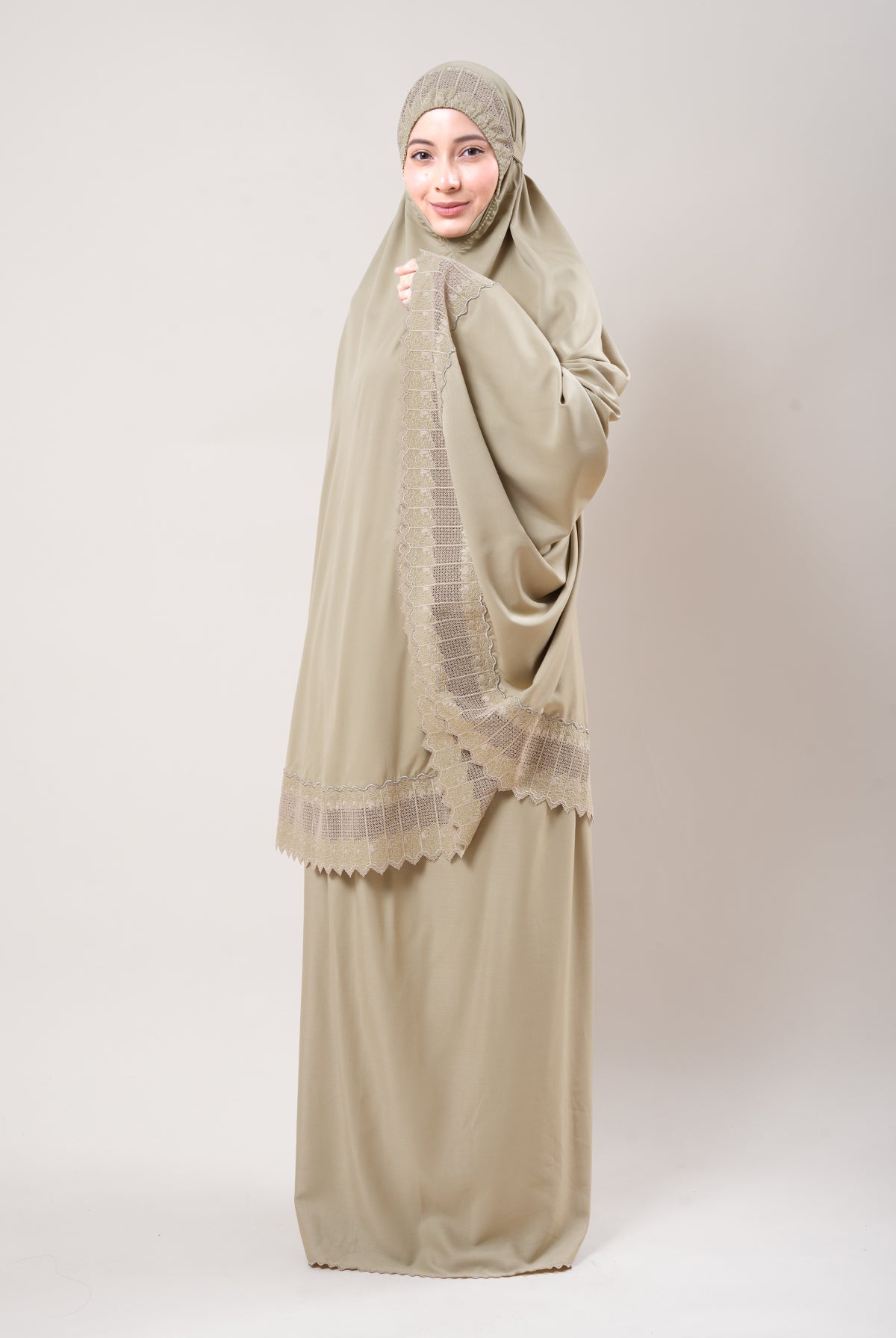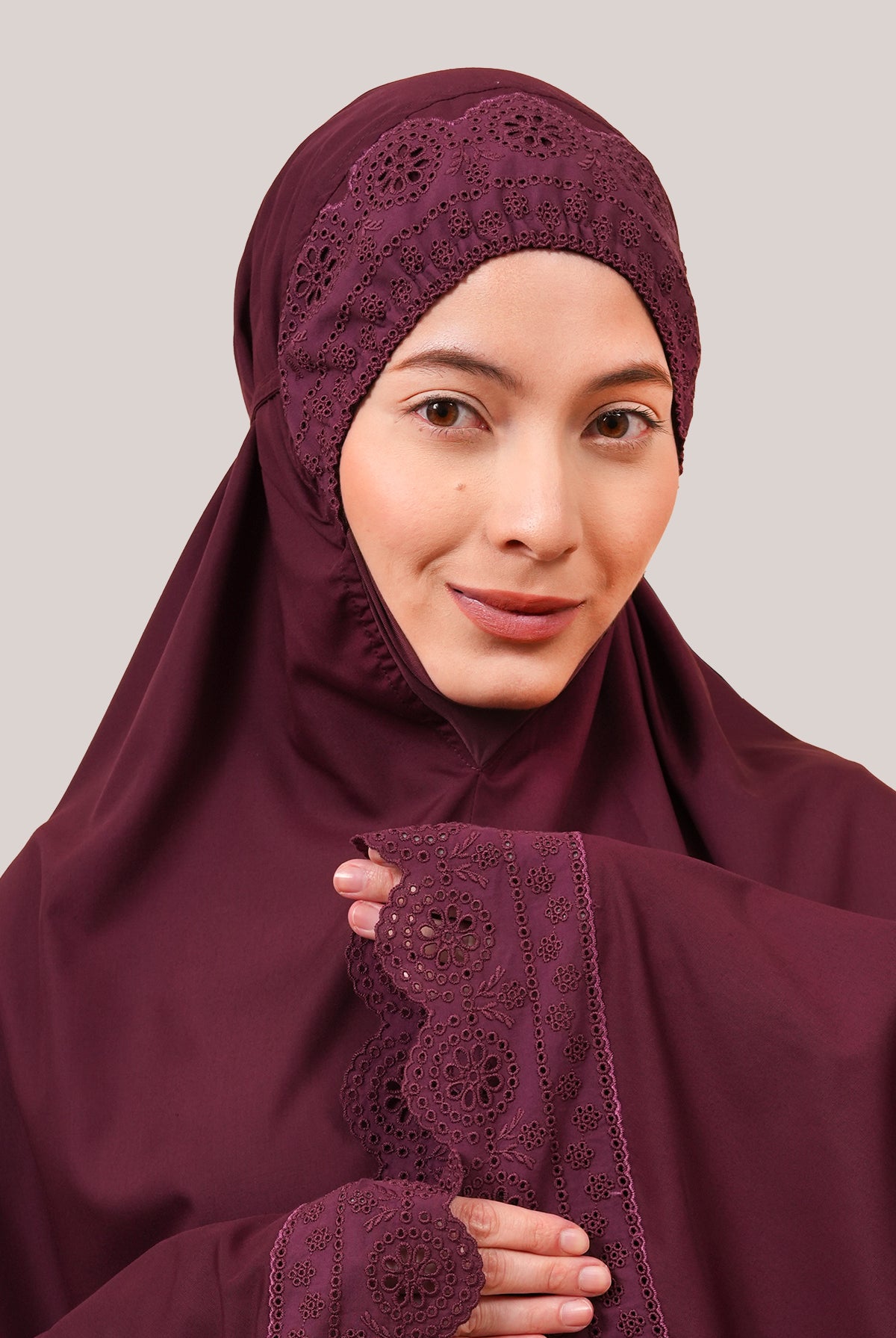 Inspired by the timeless beauty of classic lace, Signature Elara embodies elegance and endurance in every stitch. Featuring durable Signature Poplin that stretches without tearing and retains its vibrant color wash after wash, paired with fine cotton lace detailing sewn with delicate precision. Designed for women who seek grace, resilience, and serenity in every prayer.