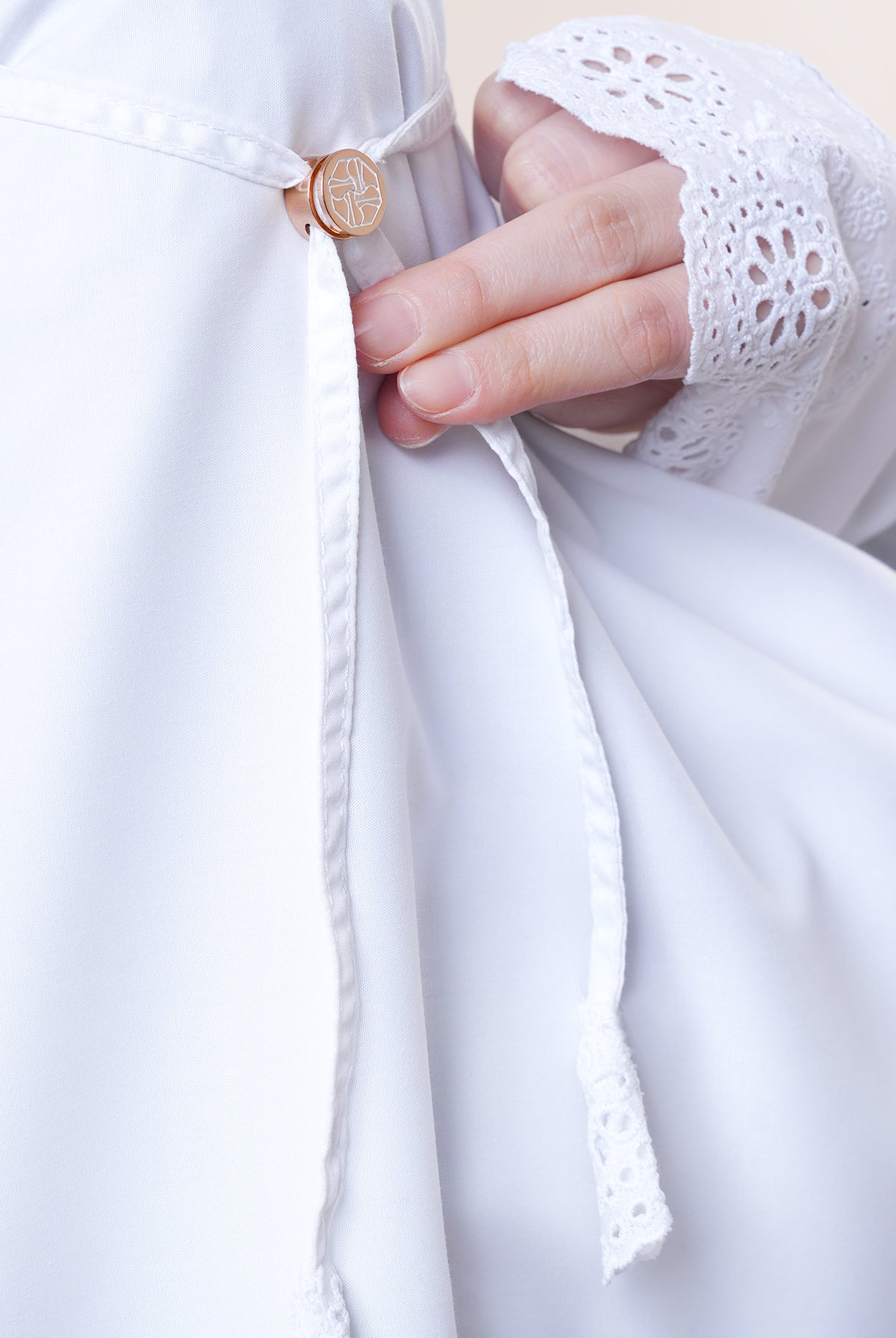 With durable material that doesn’t wrinkle easily and lacework that adds elegance without being overdone, it’s for those who seek balance in their prayerwear.