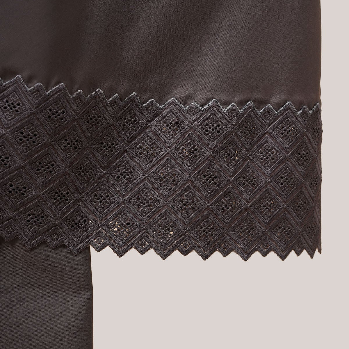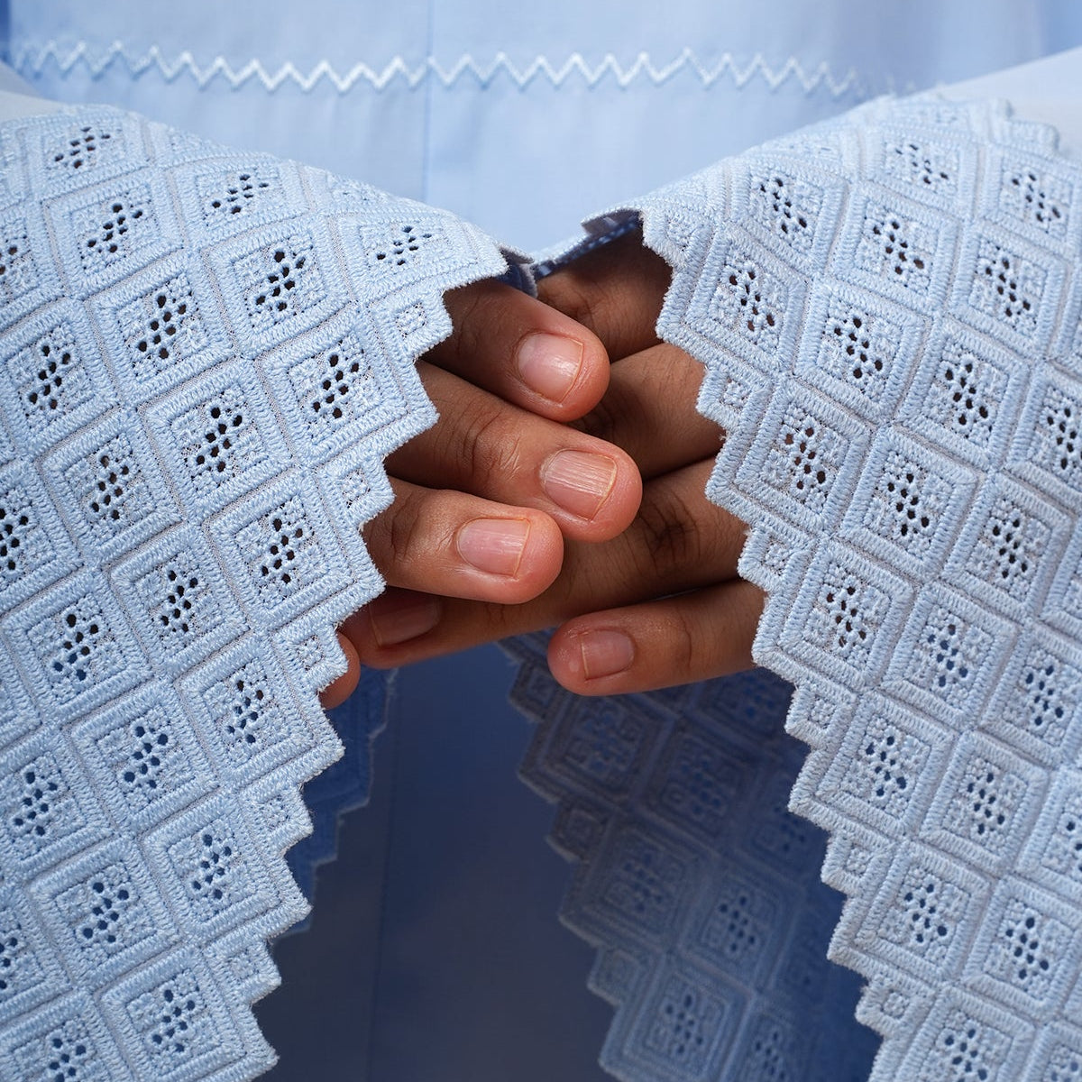 Inspired by delicate cotton lace and timeless floral elegance, this design captures a modern, refined aesthetic. Named “Razia” — meaning queen or leader — it embodies confidence, grace, and quiet charisma. Crafted from Signature Poplin, the fabric is sumptuously soft, wrinkle-resistant, and elegantly structured.