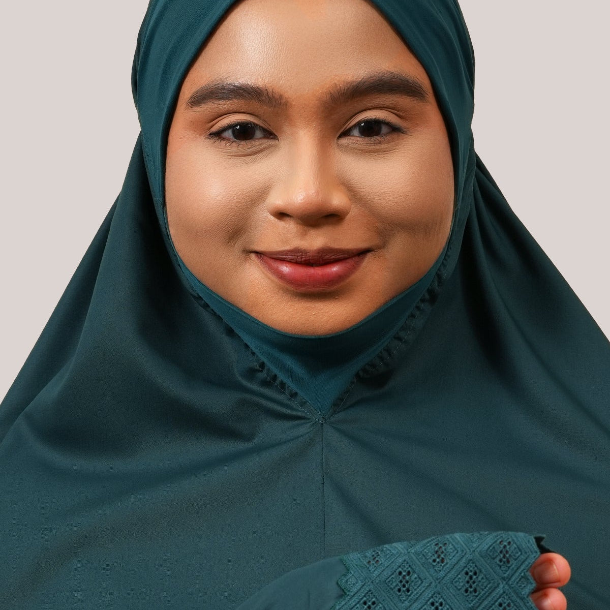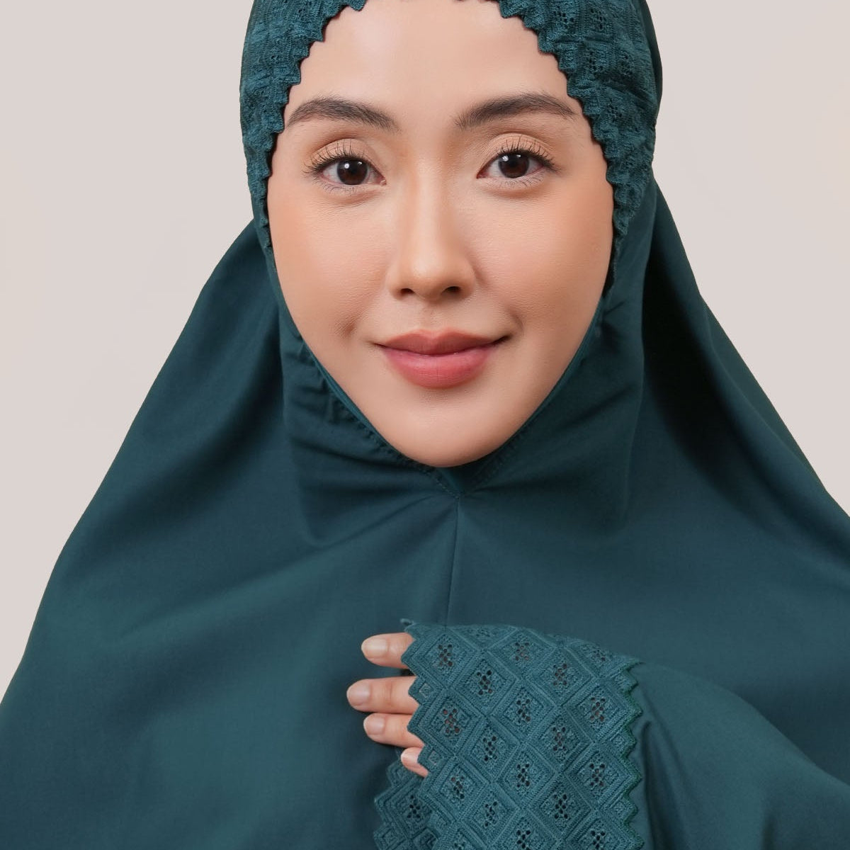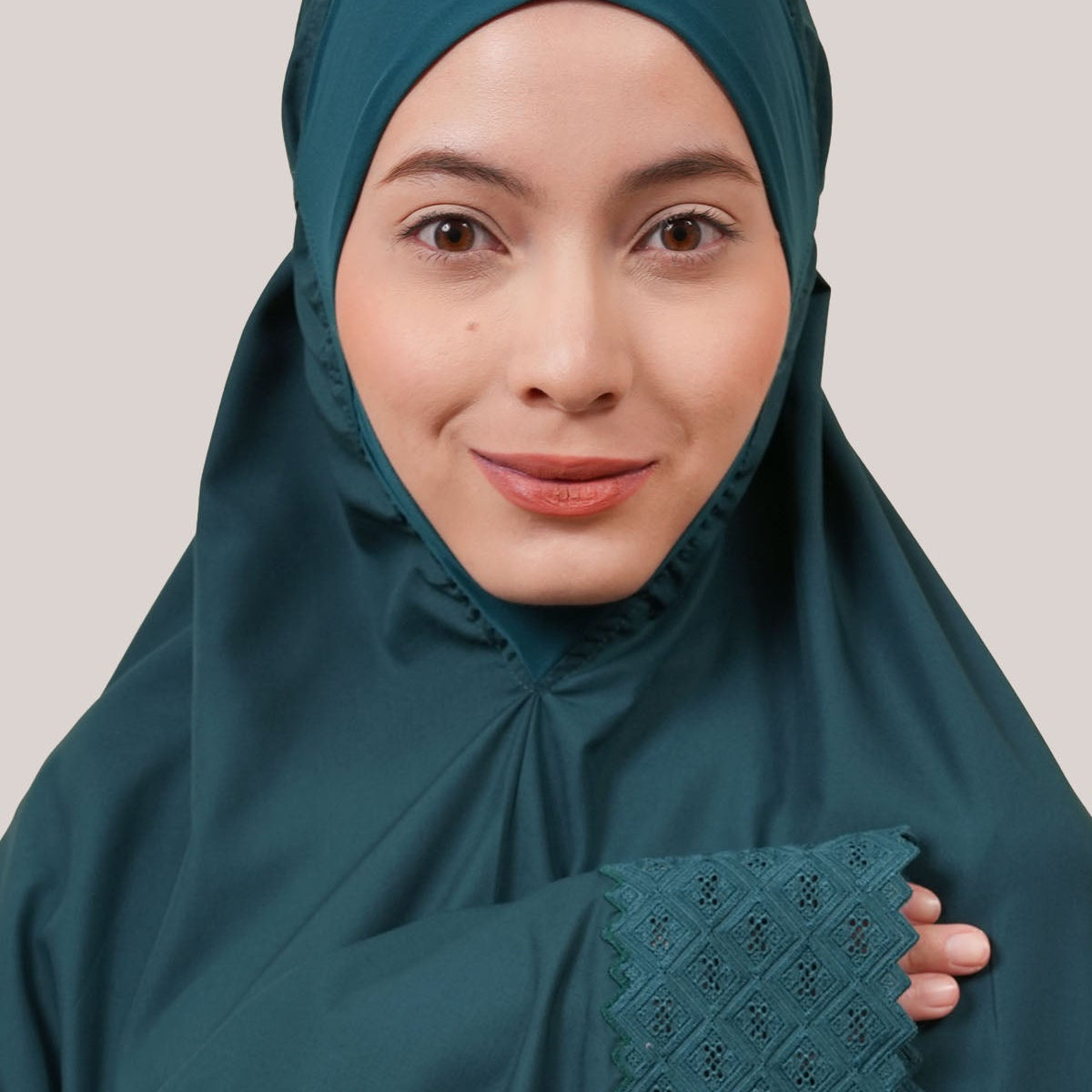 Inspired by the intricate embroidery of Persian heritage, Signature Refa blends the comfort of Khadijah Comfy Flex, long-lasting lace finishing, and breathable Signature Poplin fabric that’s lightweight, quick-dry, and gentle on the skin. Designed for women who value modesty, beauty, and functionality in every prayer.