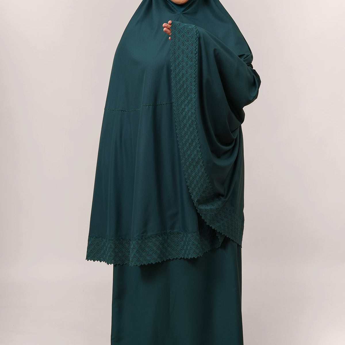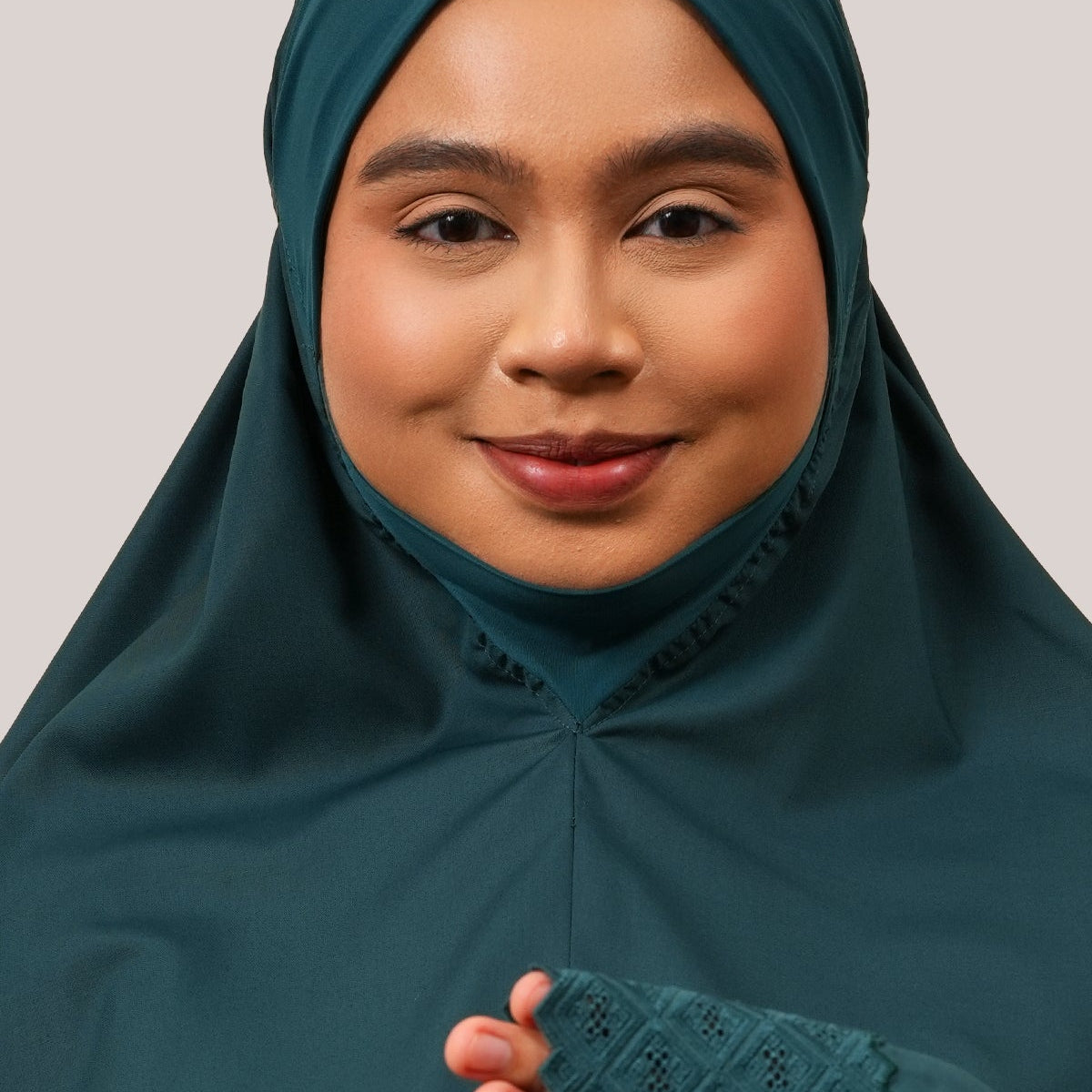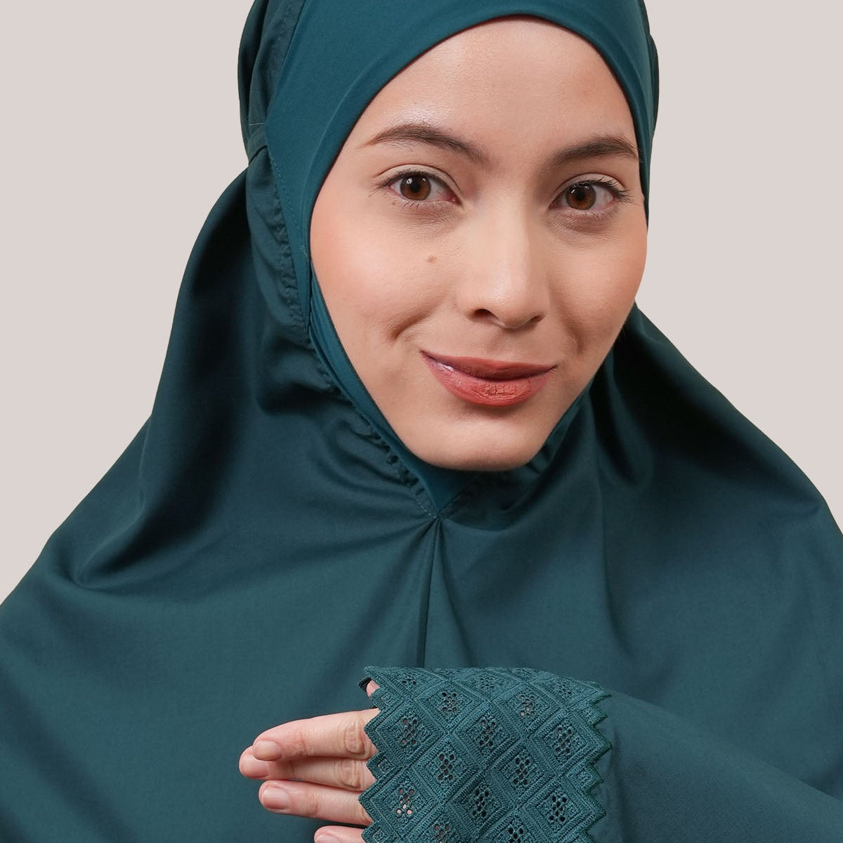 Inspired by the intricate embroidery of Persian heritage, Signature Refa blends the comfort of Khadijah Comfy Flex, long-lasting lace finishing, and breathable Signature Poplin fabric that’s lightweight, quick-dry, and gentle on the skin. Designed for women who value modesty, beauty, and functionality in every prayer.