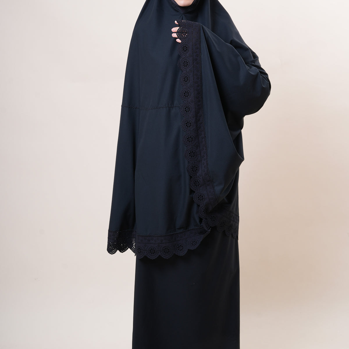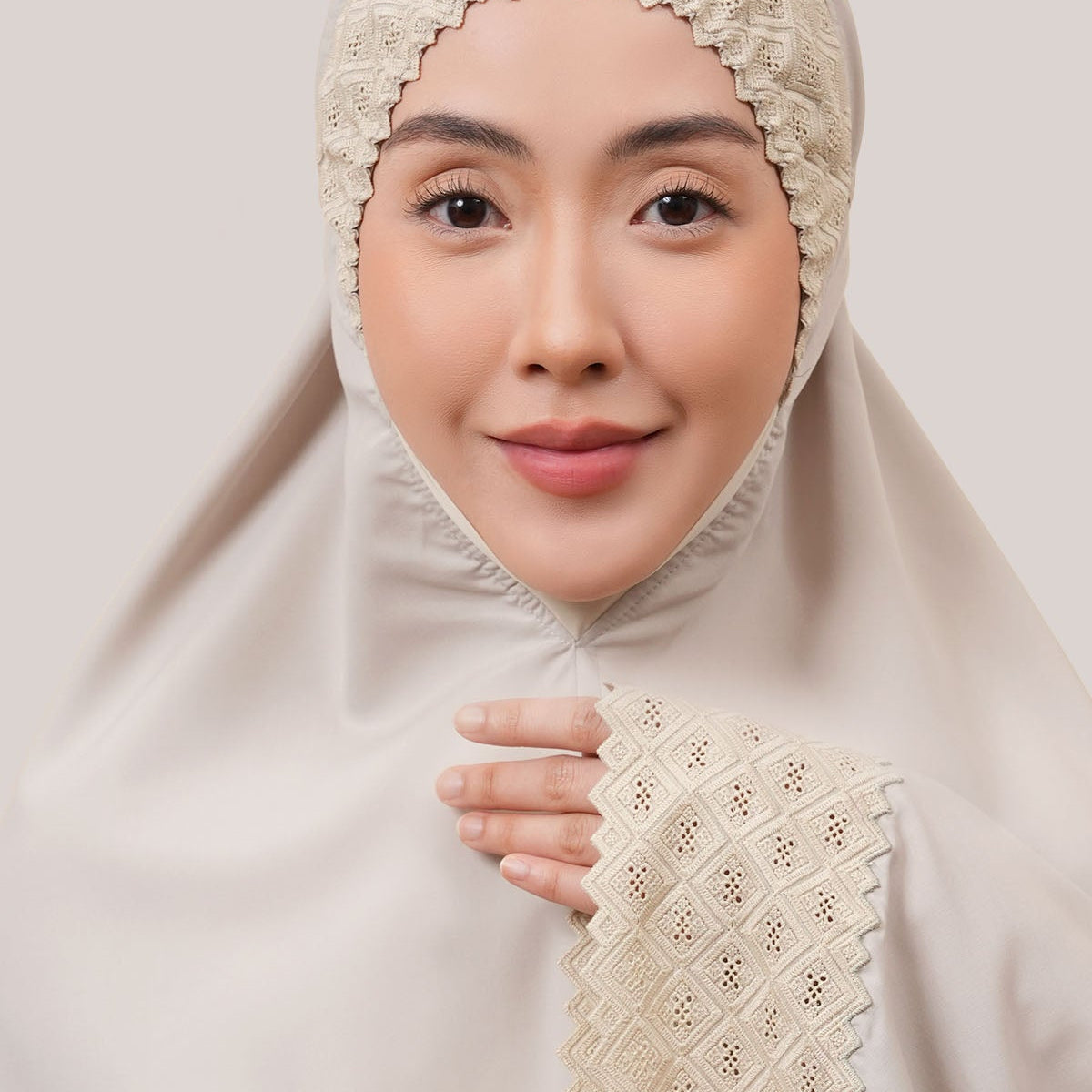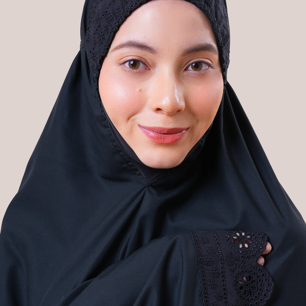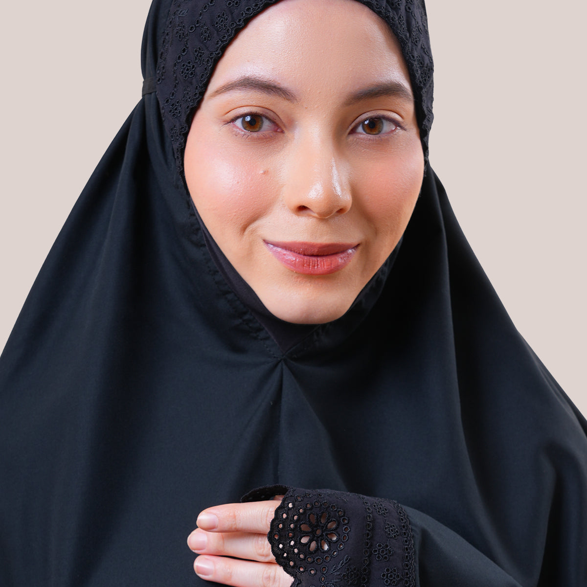 Inspired by the timeless beauty of classic lace, Signature Elara embodies elegance and endurance in every stitch. Featuring durable Signature Poplin that stretches without tearing and retains its vibrant color wash after wash, paired with fine cotton lace detailing sewn with delicate precision. Designed for women who seek grace, resilience, and serenity in every prayer.