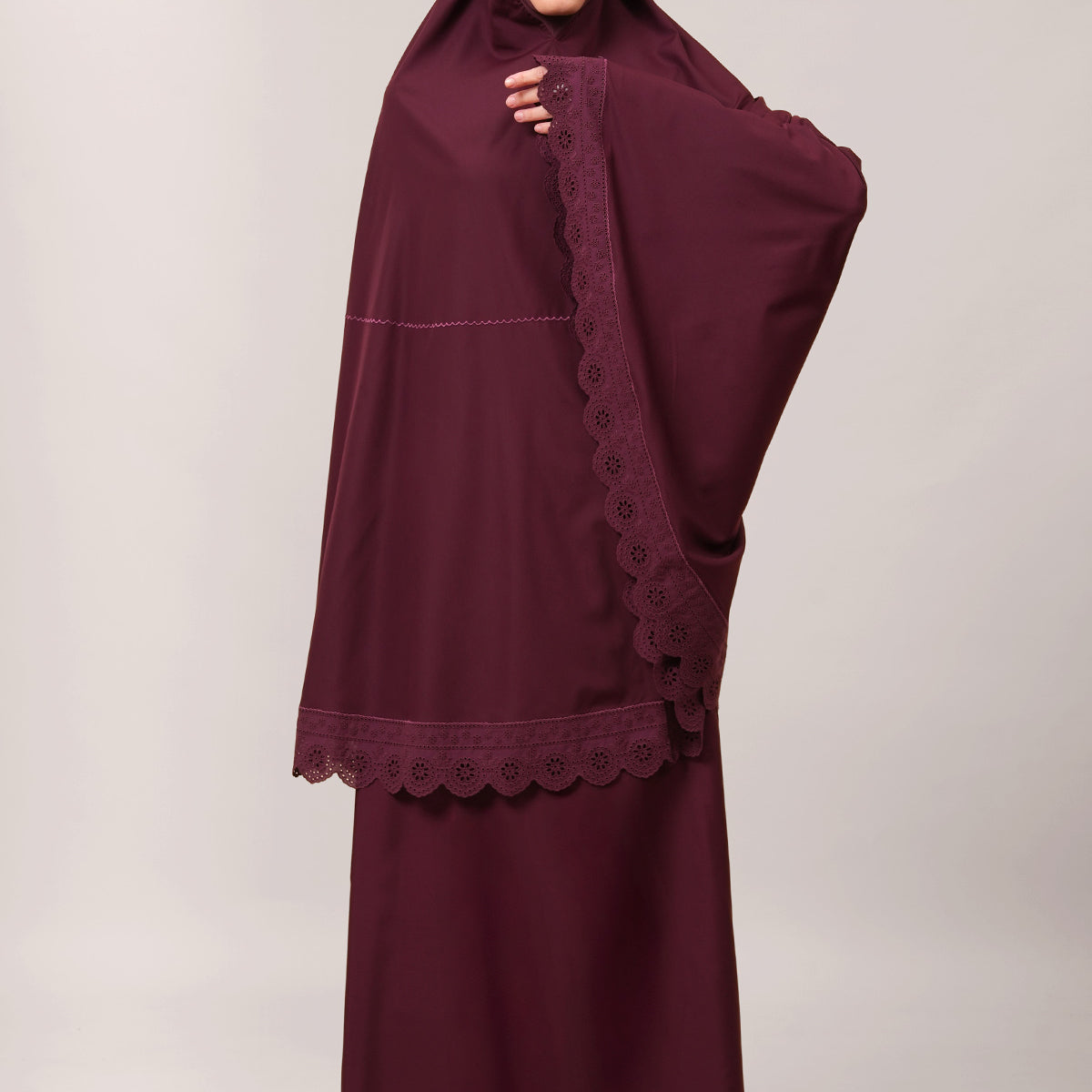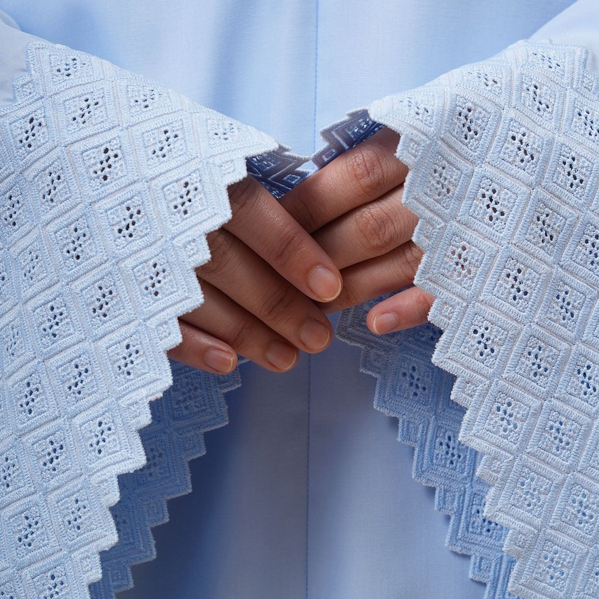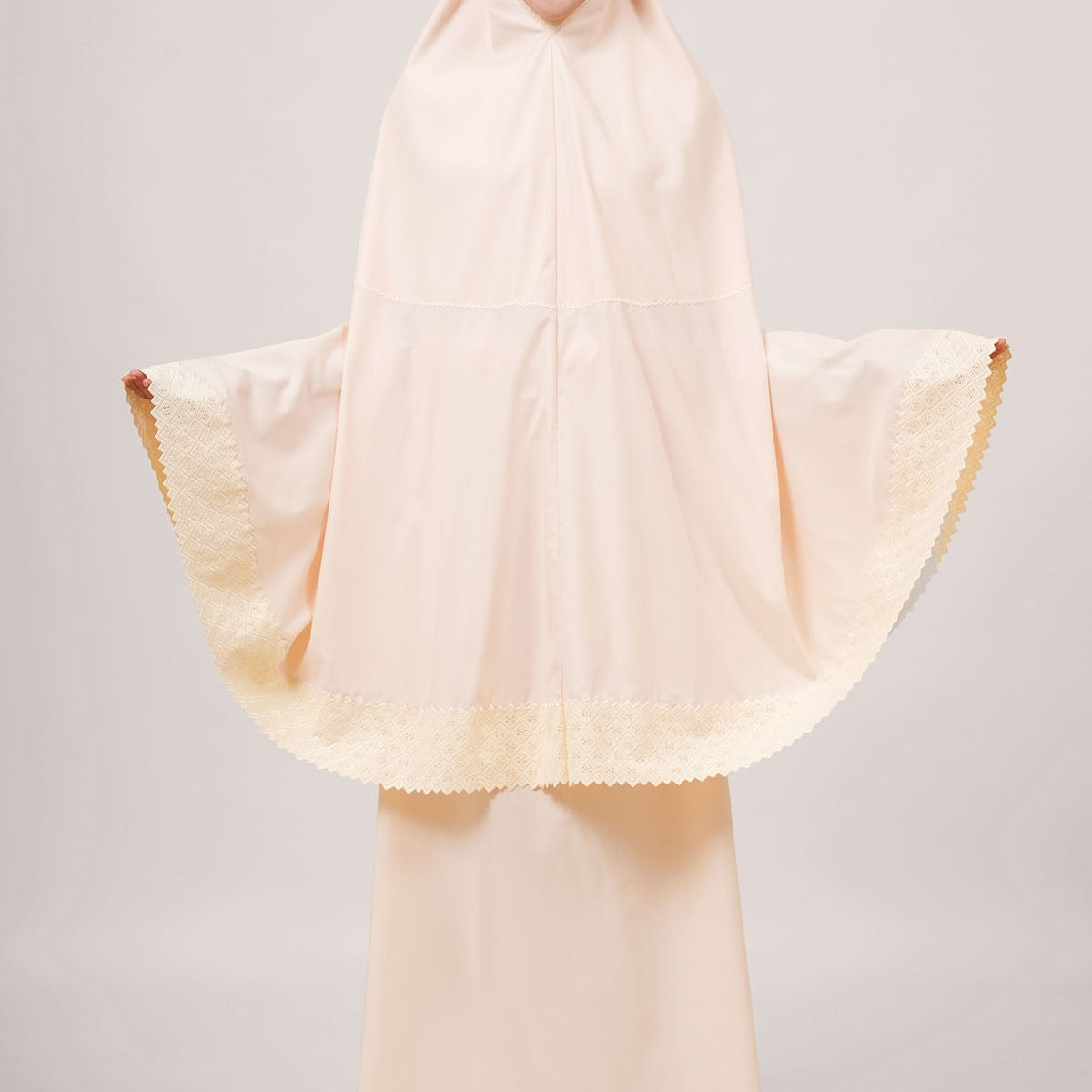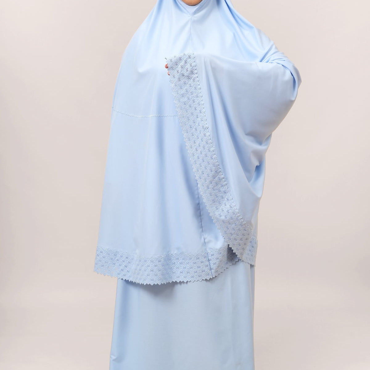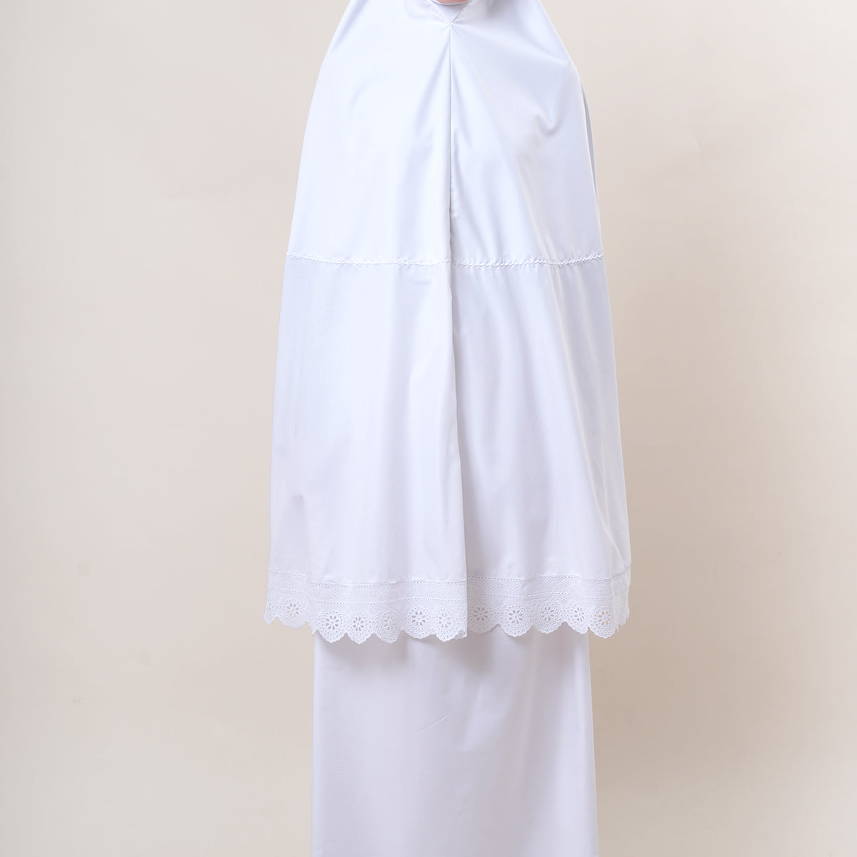 Inspired by the timeless beauty of classic lace, Signature Elara embodies elegance and endurance in every stitch. Featuring durable Signature Poplin that stretches without tearing and retains its vibrant color wash after wash, paired with fine cotton lace detailing sewn with delicate precision. Designed for women who seek grace, resilience, and serenity in every prayer.
