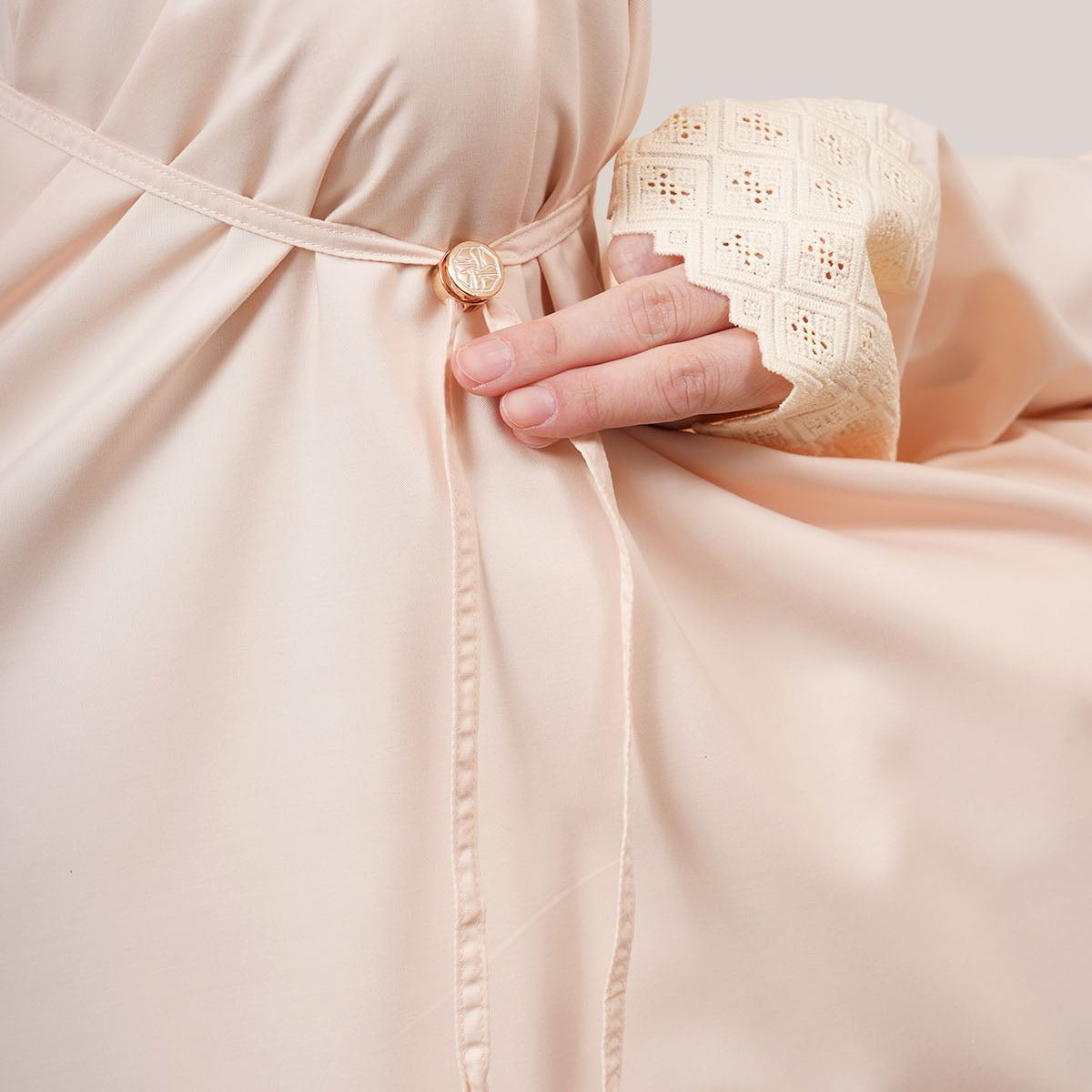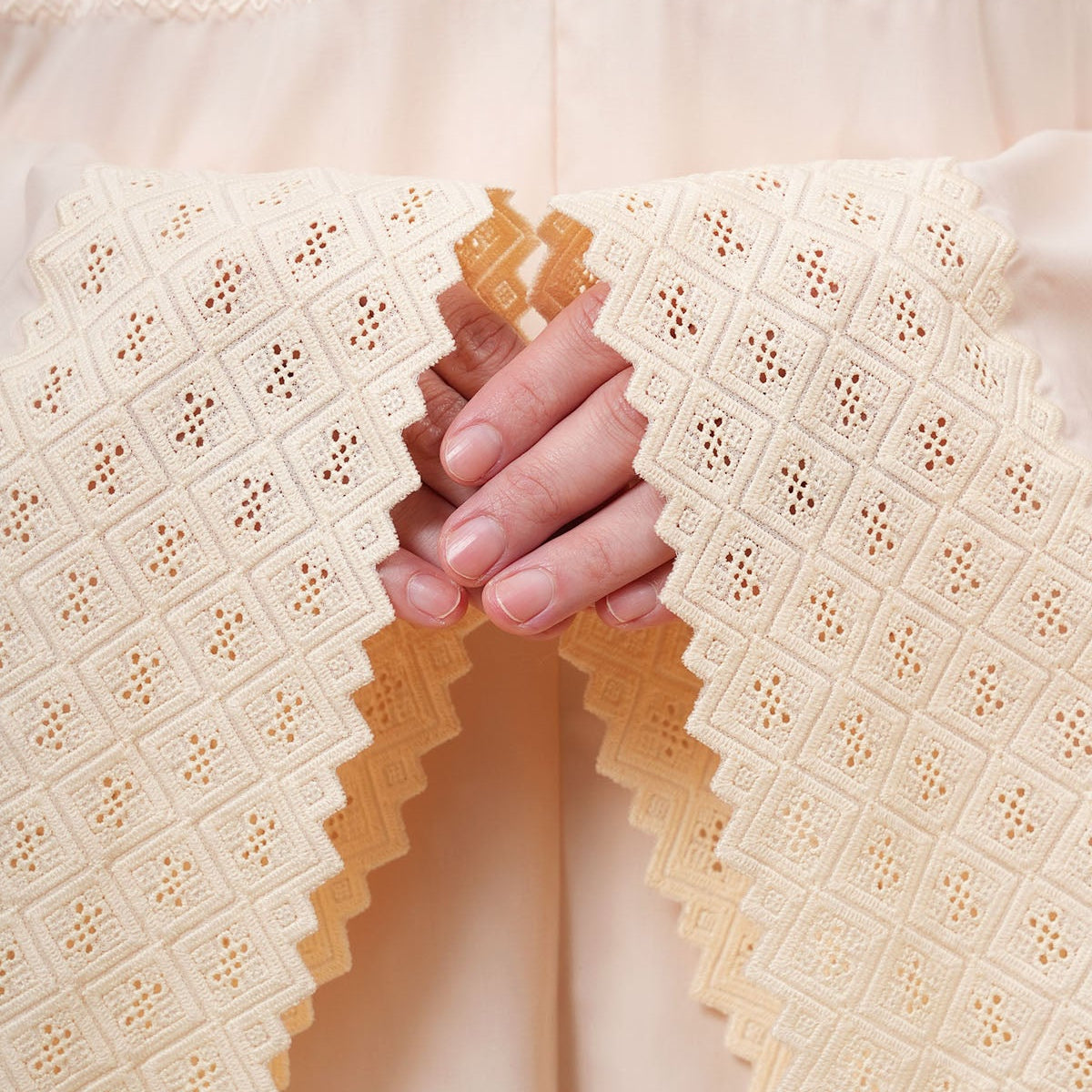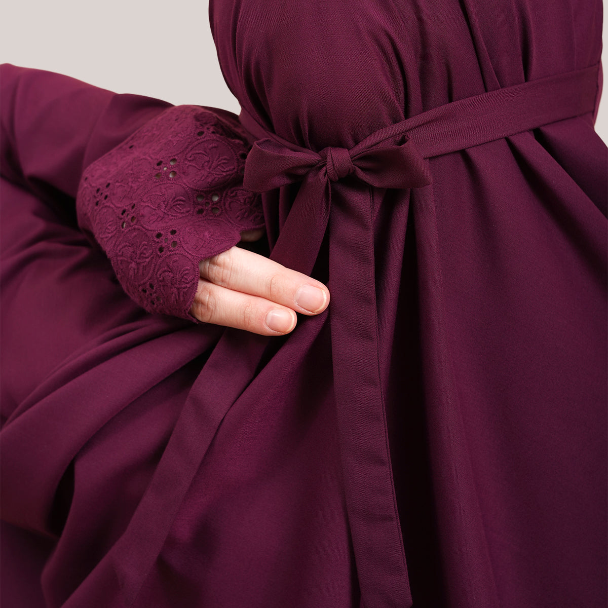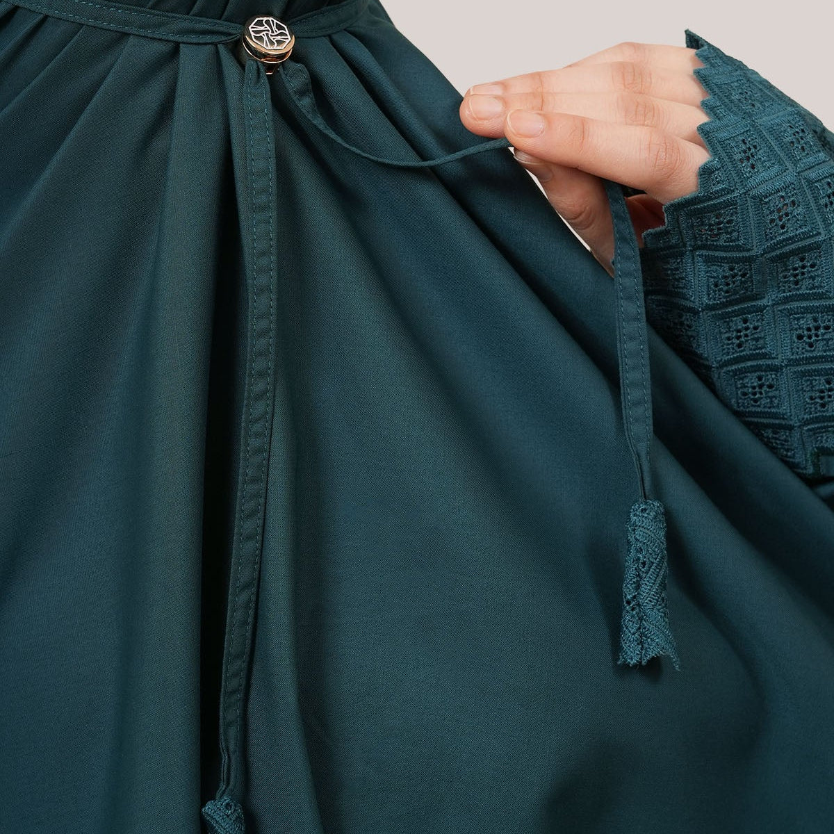 Inspired by the timeless beauty of classic lace, Signature Elara embodies elegance and endurance in every stitch. Featuring durable Signature Poplin that stretches without tearing and retains its vibrant color wash after wash, paired with fine cotton lace detailing sewn with delicate precision. Designed for women who seek grace, resilience, and serenity in every prayer.
