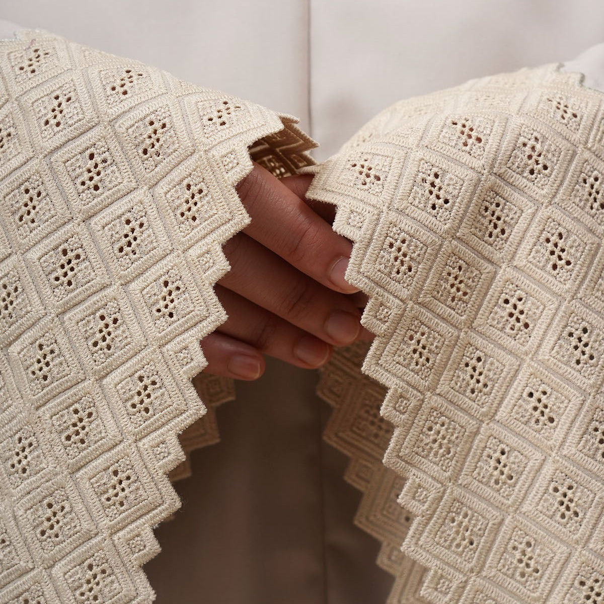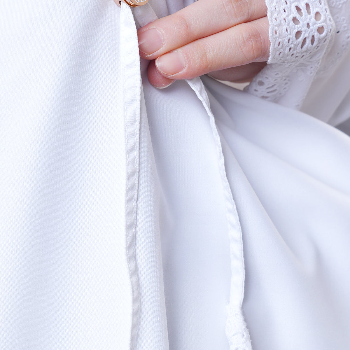 With durable material that doesn’t wrinkle easily and lacework that adds elegance without being overdone, it’s for those who seek balance in their prayerwear.