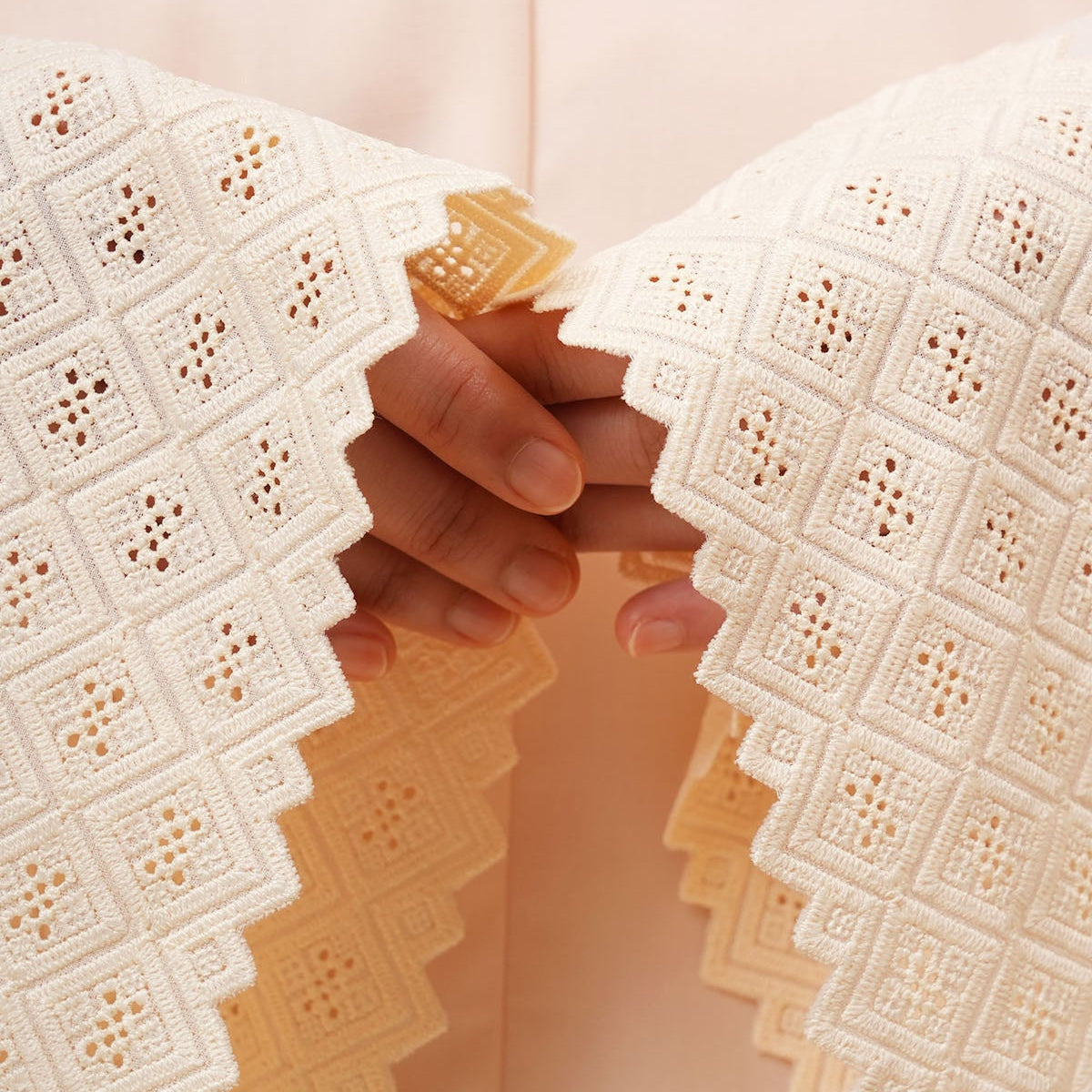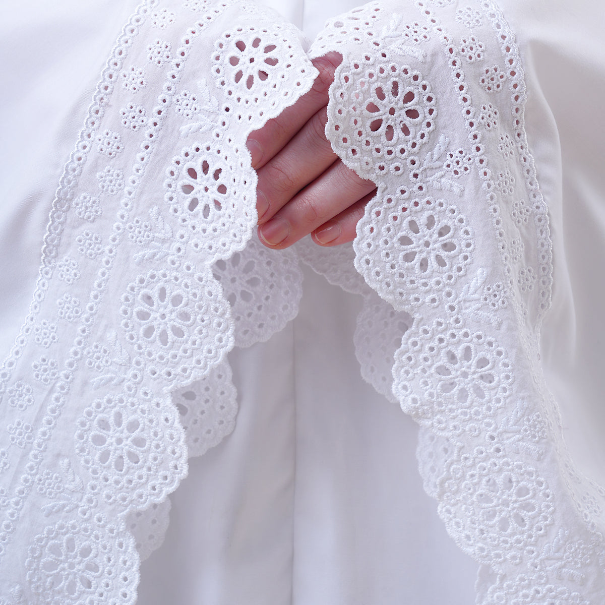 Inspired by Japanese tradition, the combination of Cotton and Guipure Lace gives Kumiko a timeless, elegant edge.