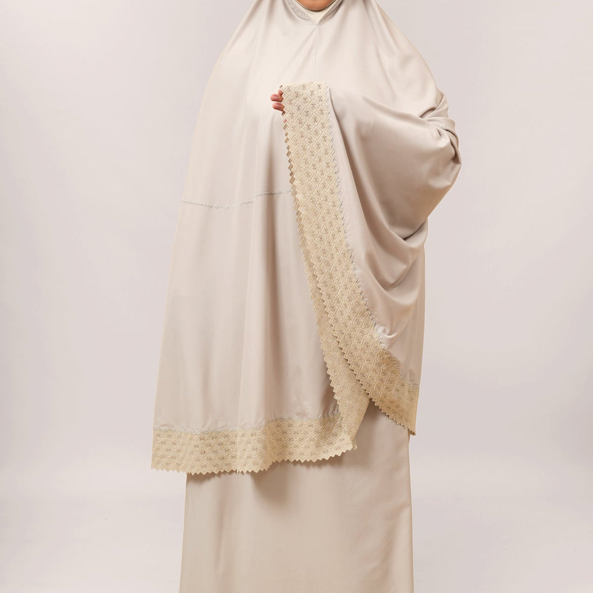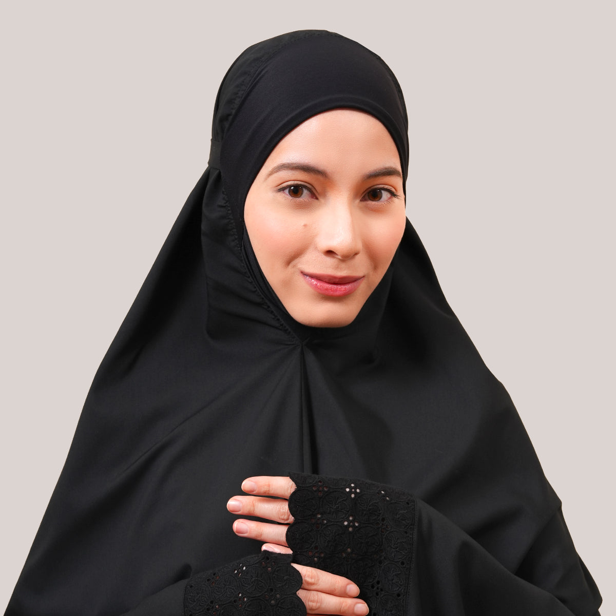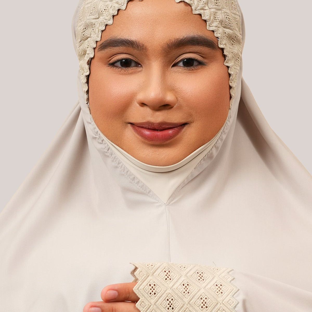 Made for fuller coverage and lasting comfort, Signature Elara Plus features durable stretch Poplin and delicate cotton lace, ensuring ease and elegance for every prayer.
