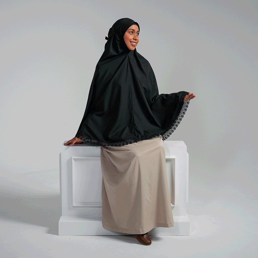 Maira, meaning “light” or “radiance,” reflects the beauty and grace the wearer brings into every moment. The Modish Maira Midi is a versatile prayerwear piece designed to be worn effortlessly with a long dress or jubah—no additional sarong needed. Created for those who seek elegant simplicity without sacrificing comfort or coverage.