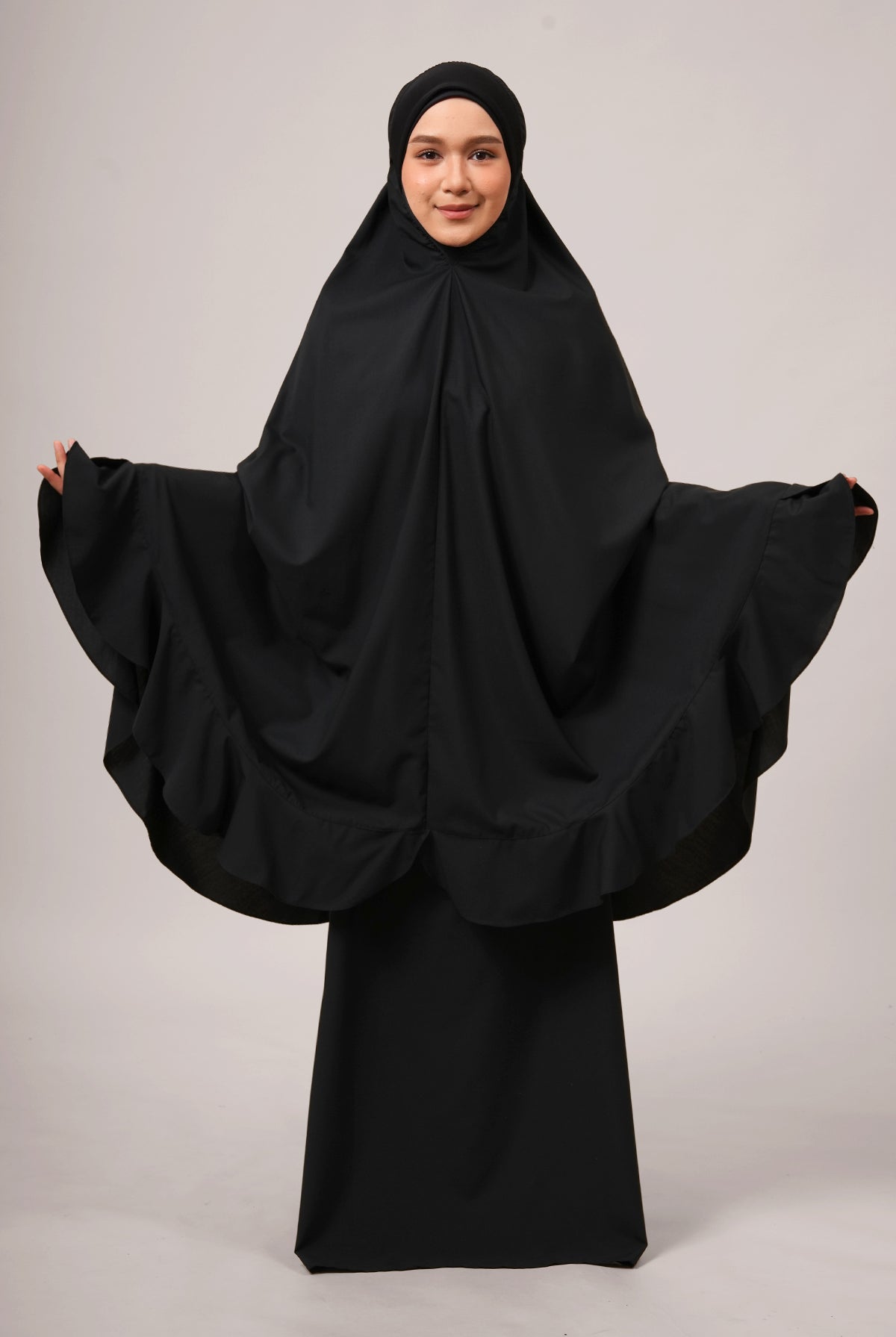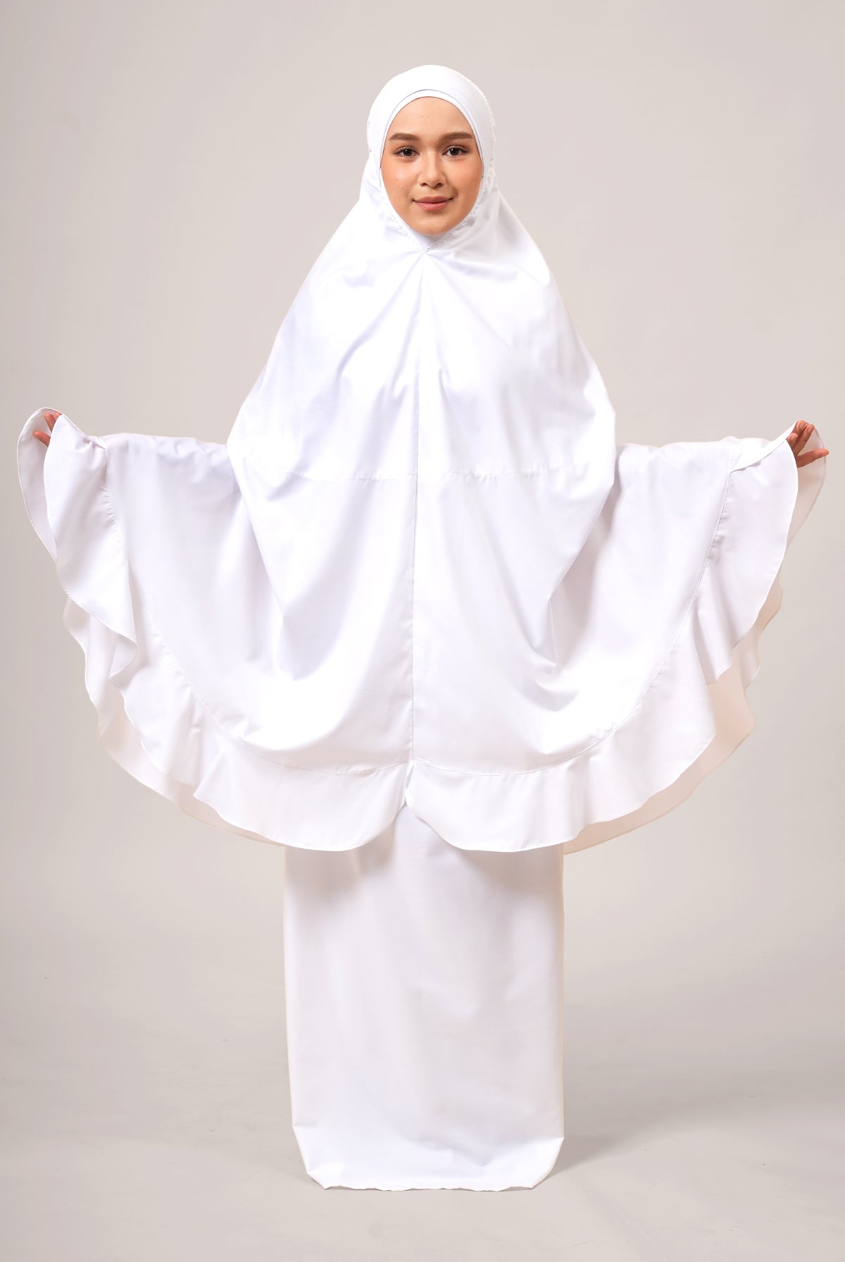 After over a decade of refinement, the face design of Siti Khadijah telekung evolves once more - introducing Maharani (2025), a tribute to timeless elegance and modern comfort. Inspired by the poise of a queen perfecting her presence, this latest release features a soft, non-stiff awning that gently frames the face without appearing bulky or rigid.
