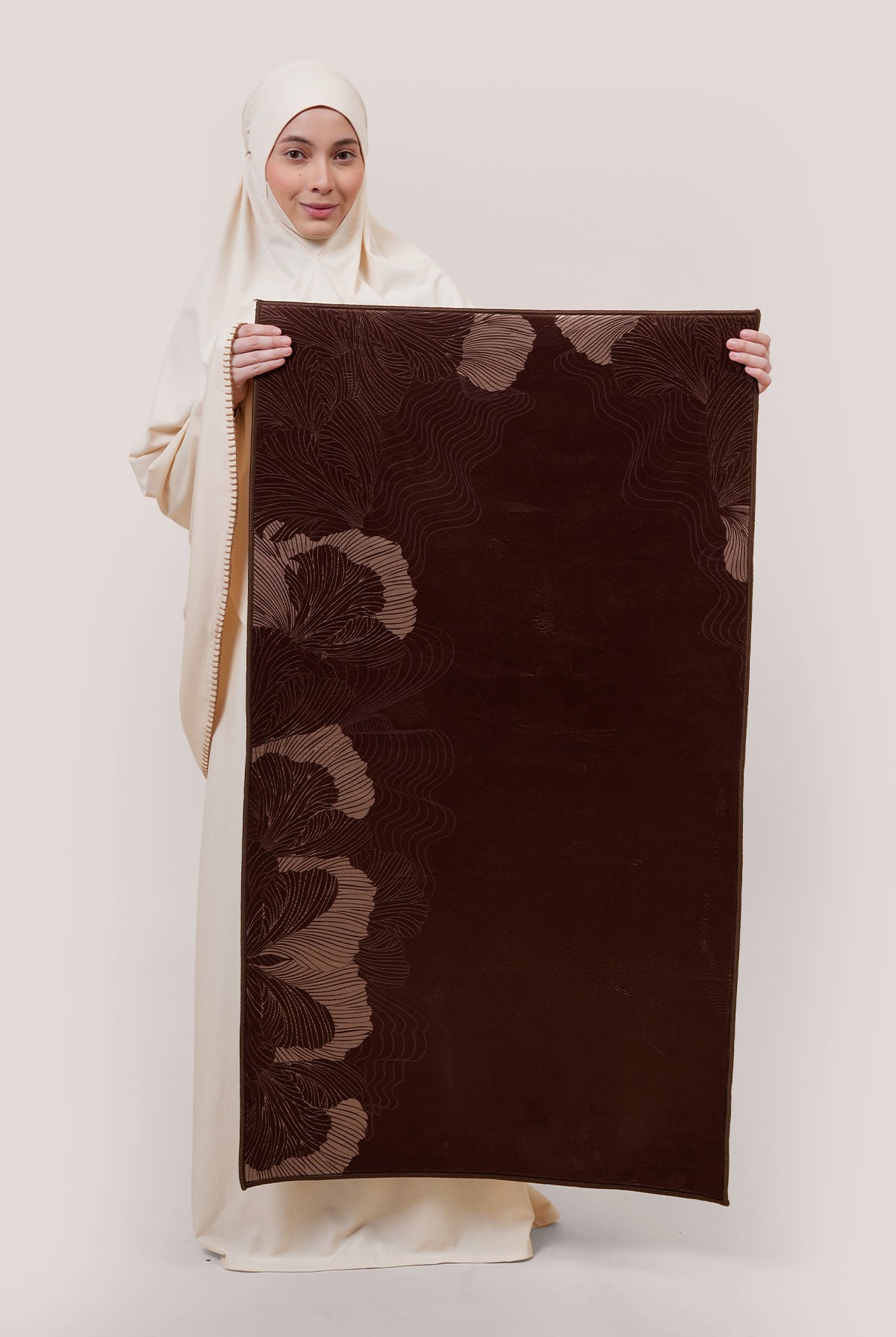 Inspired by the Arabic word Safar (سفر), meaning journey or travel, this lightweight, compact prayer mat features soft, velvet-like PU material, a waterproof base, easy hand cleaning, a portable pouch, and a metal weight for stability.