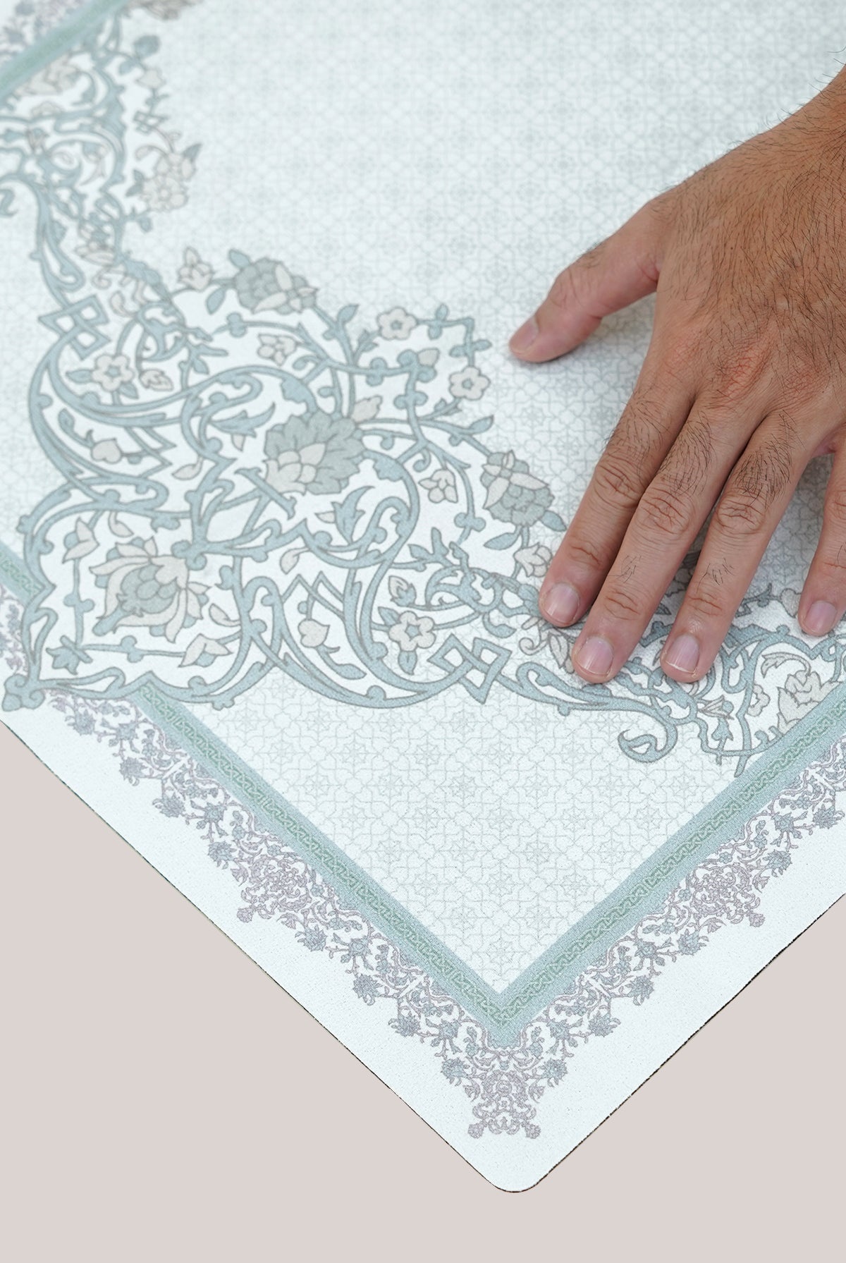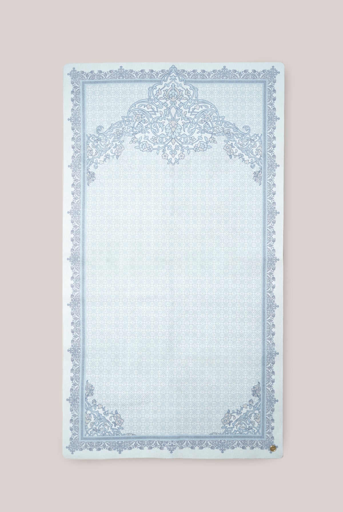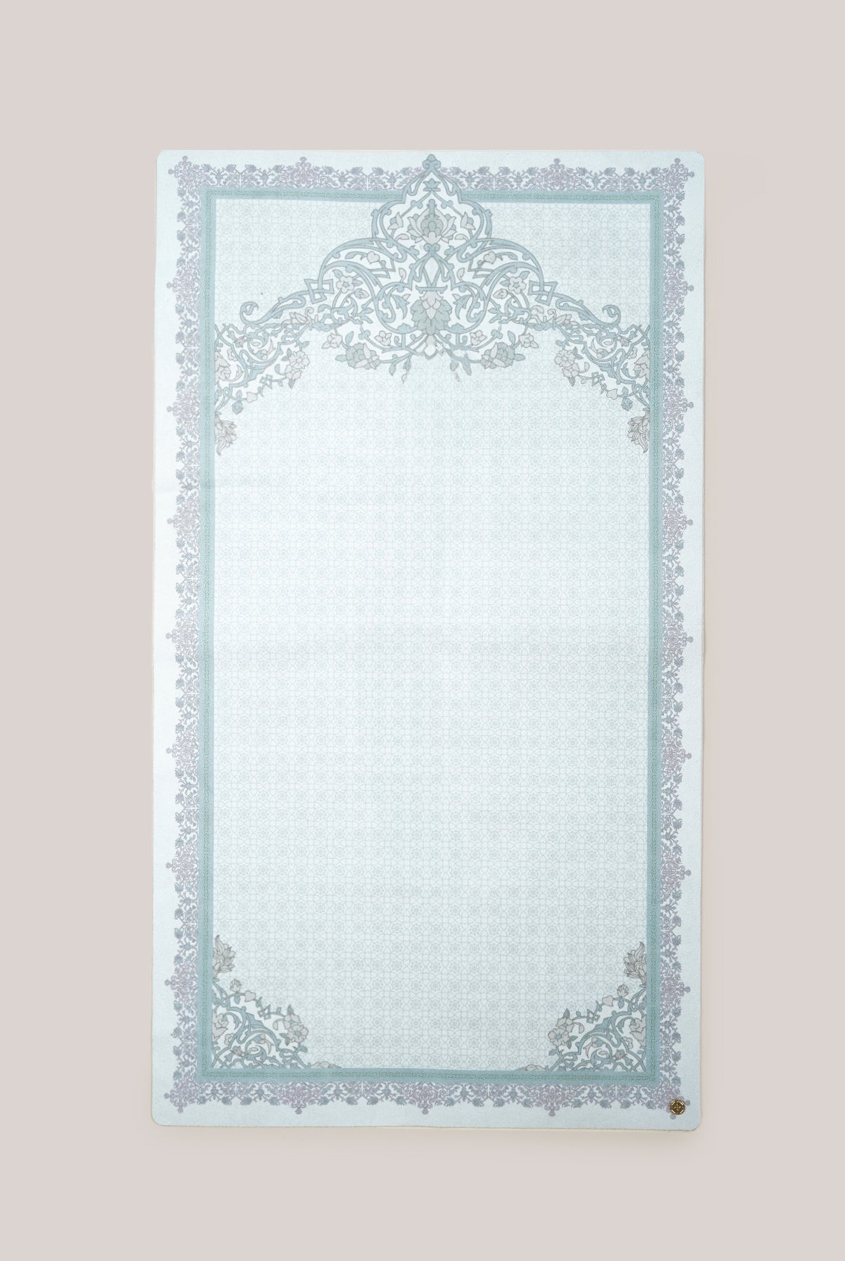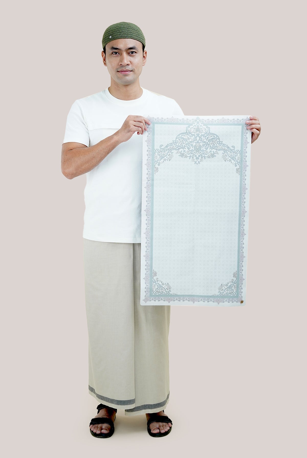 Crafted from soft, skin-friendly polyester with a 2mm foam padding for added comfort during sujood, this prayer mat features a waterproof base and elastic loops for neat folding and practicality.
