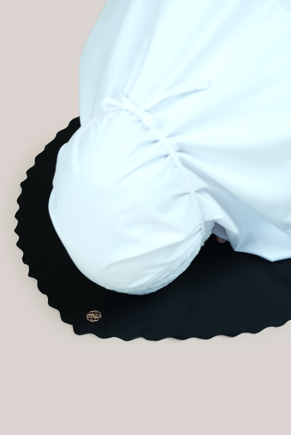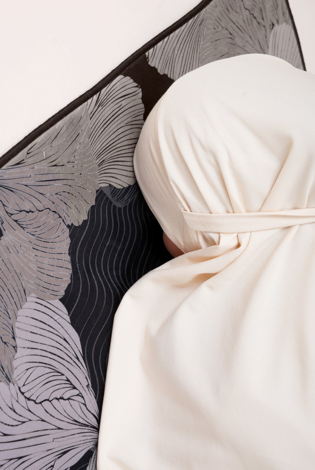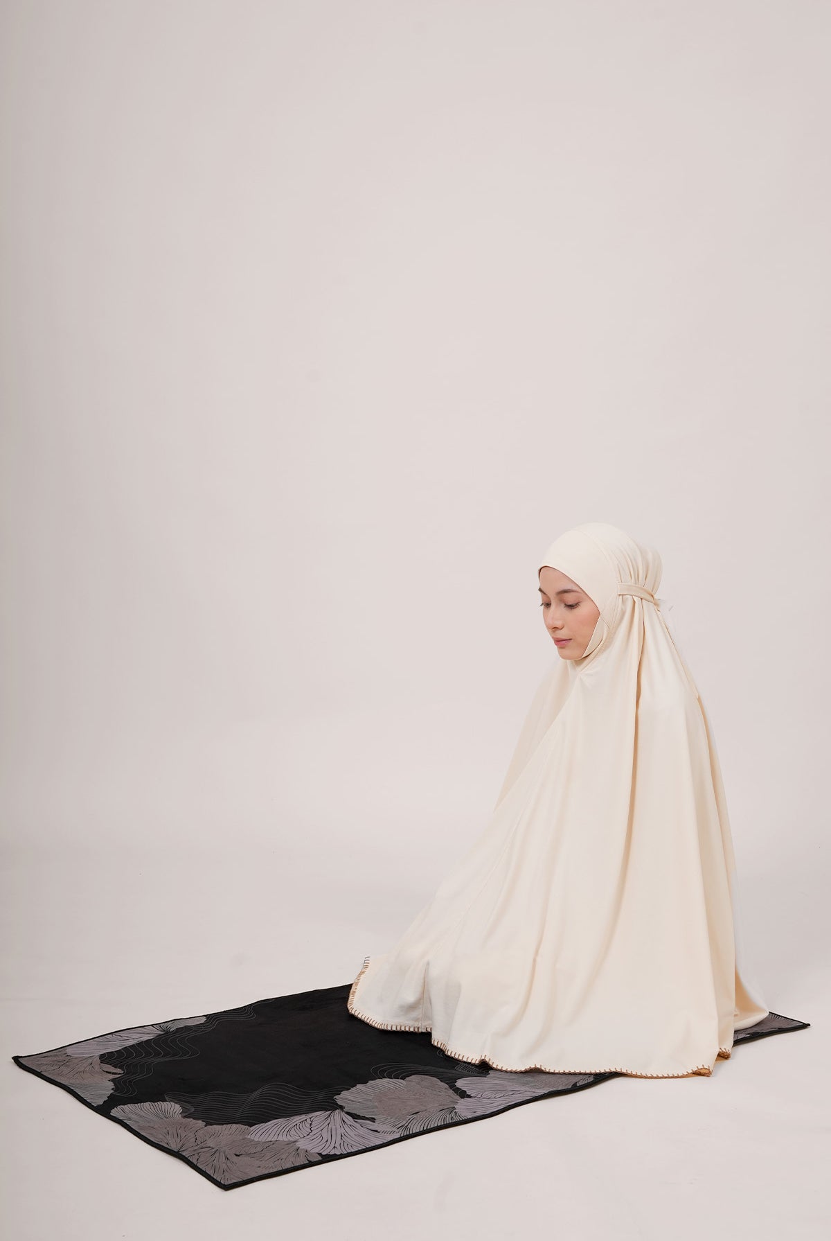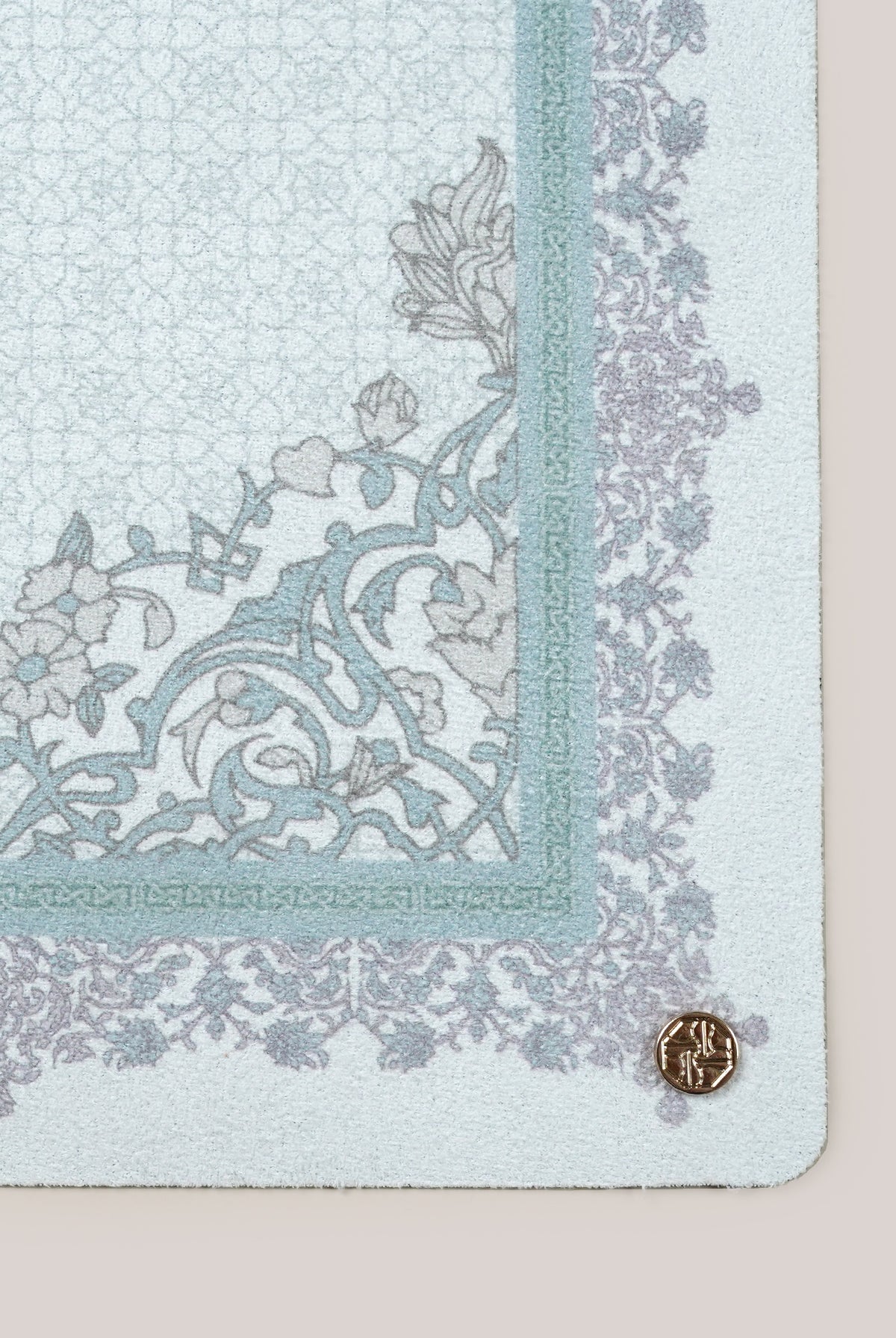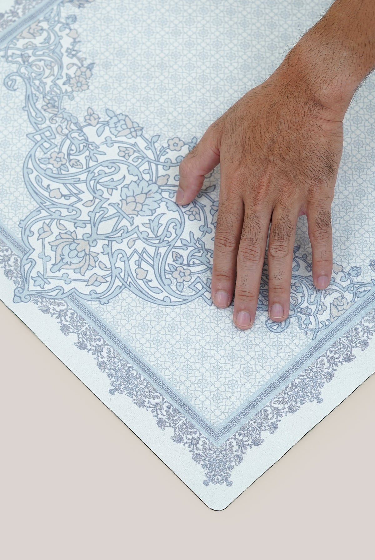 Crafted from soft, skin-friendly polyester with a 2mm foam padding for added comfort during sujood, this prayer mat features a waterproof base and elastic loops for neat folding and practicality.