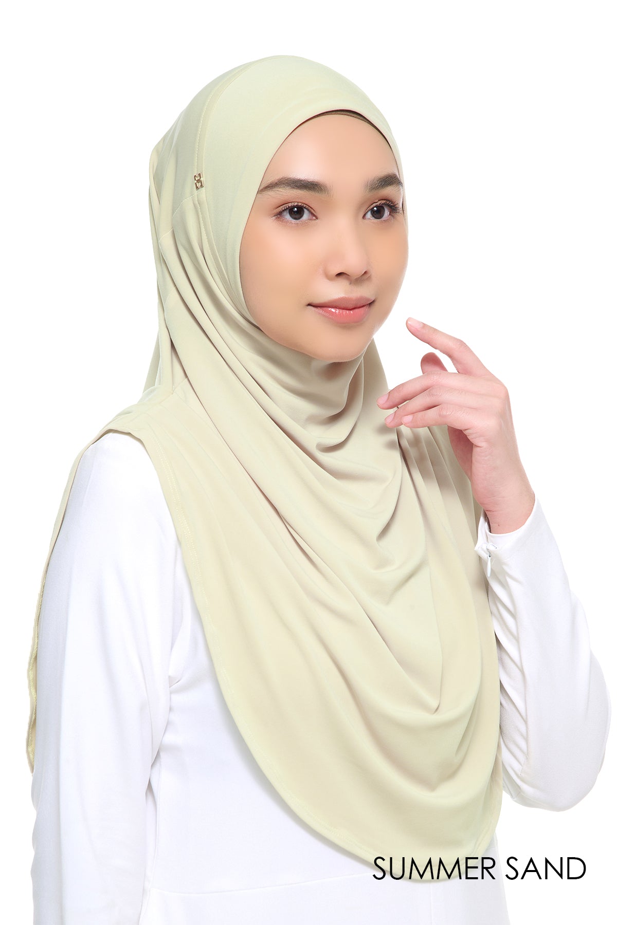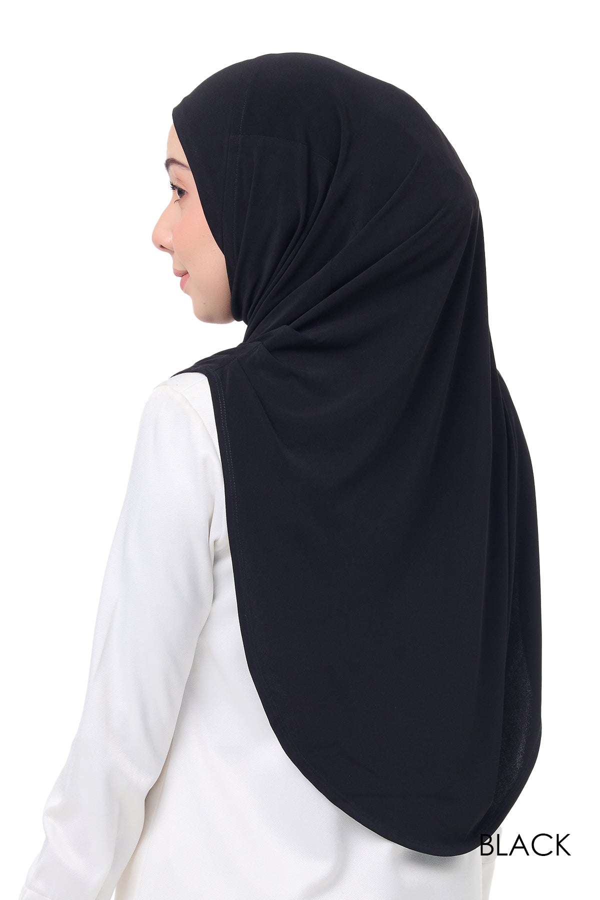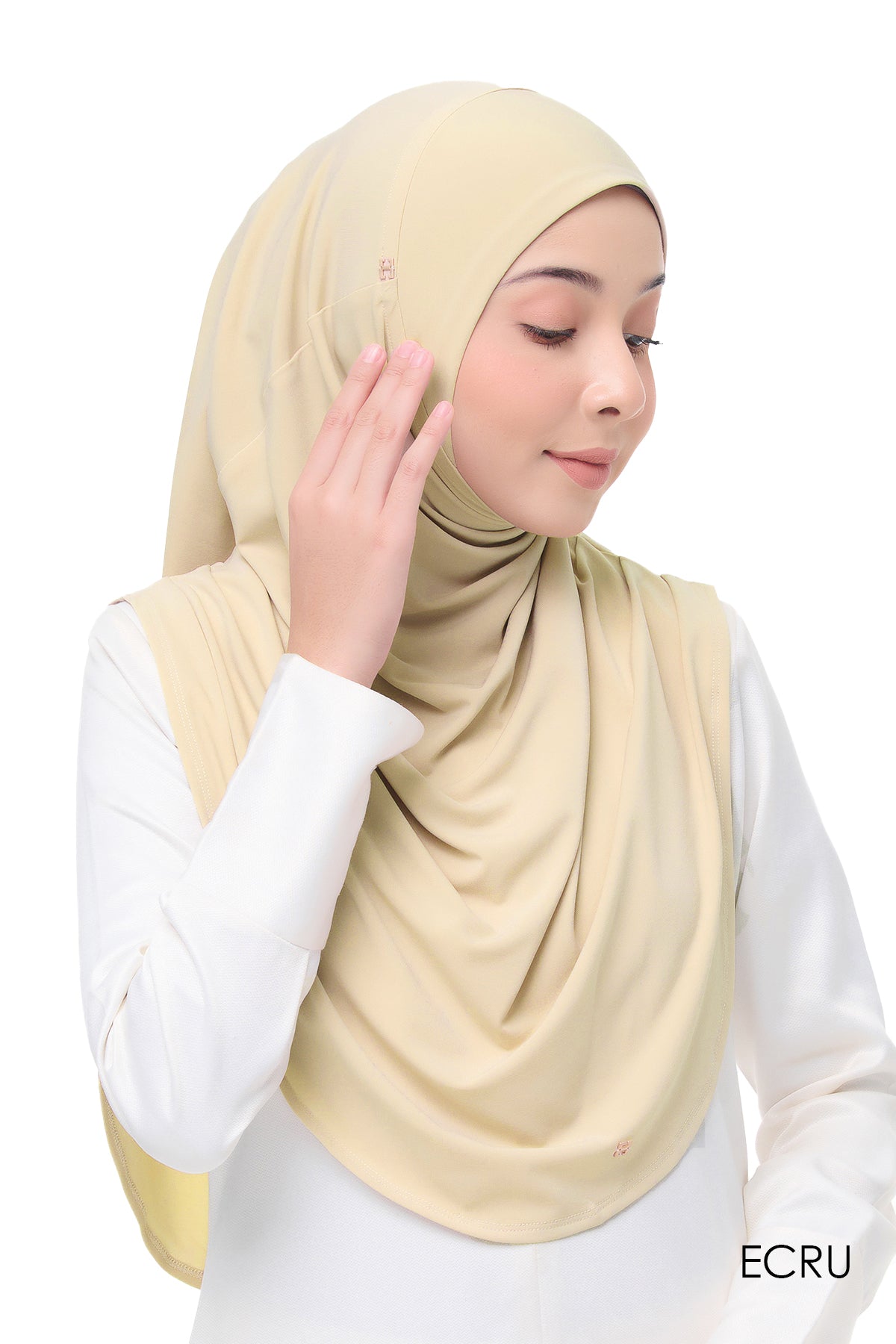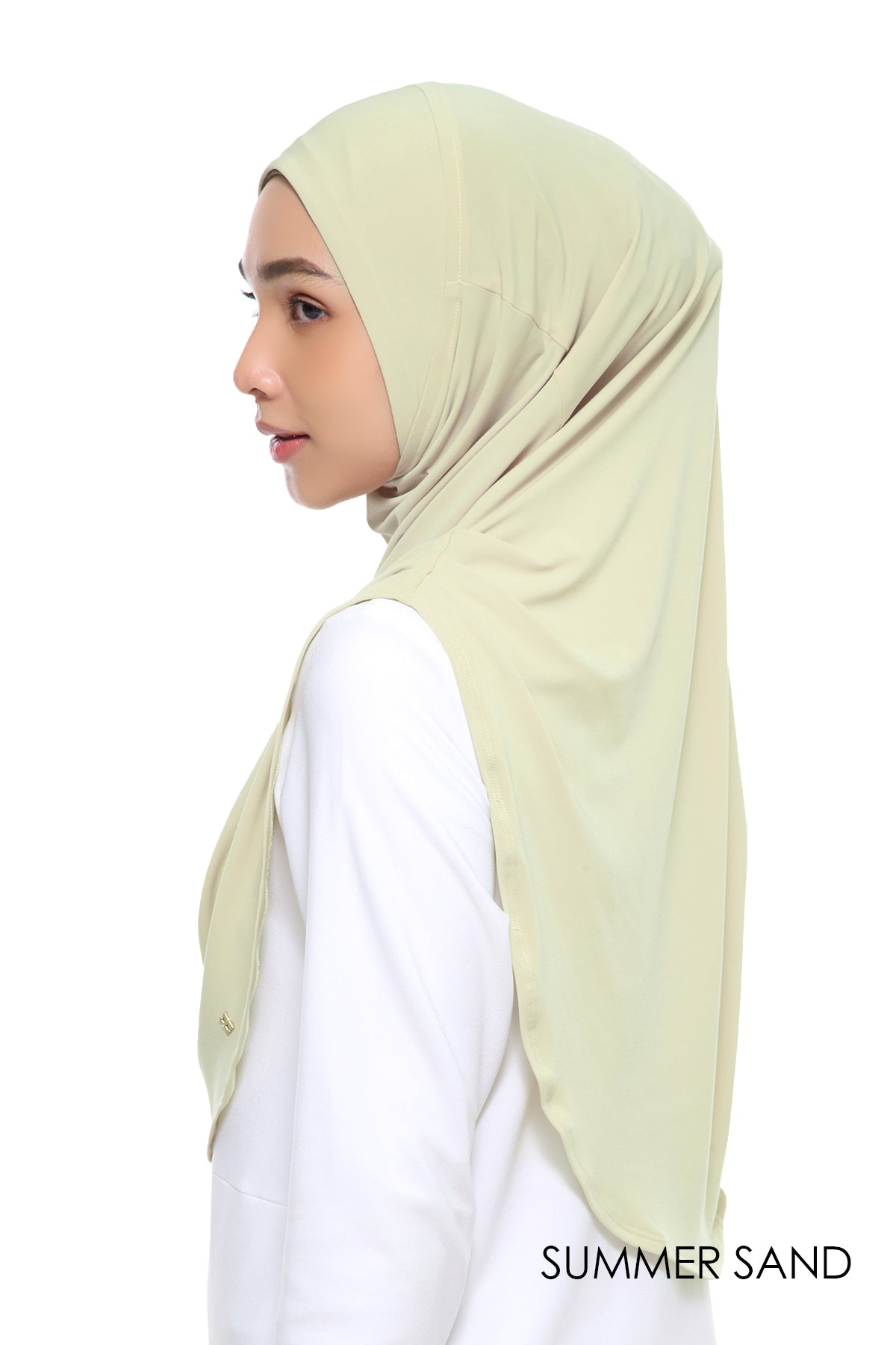 Made fully from lycra to provide stretchy, comfortable hijab experience all day long. Designed with side seams to provide seamless front look. Decorated with Hegira pendant, giving contrast to the plain hijab.