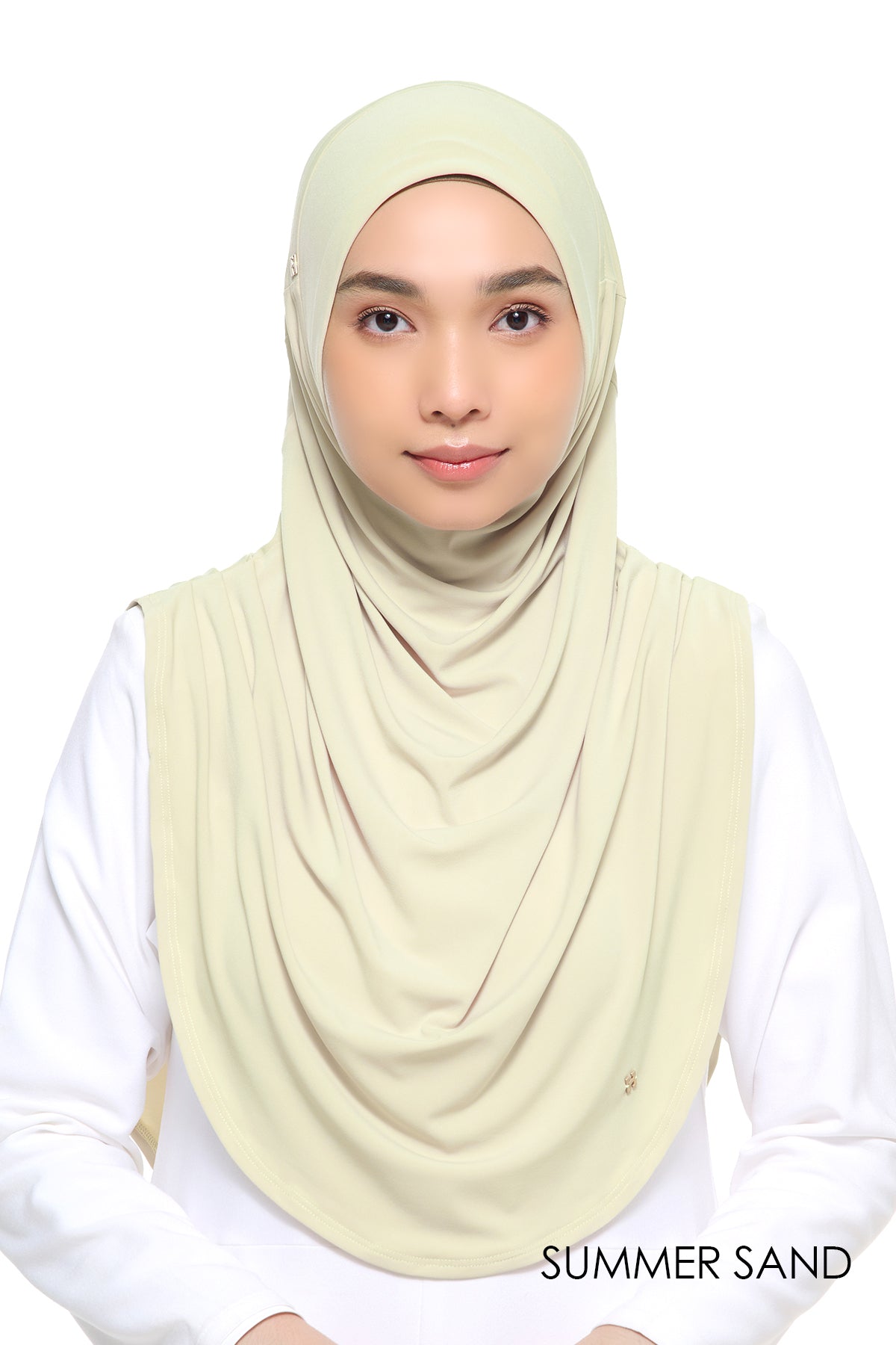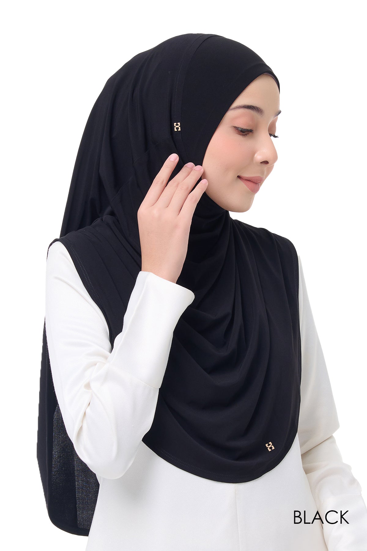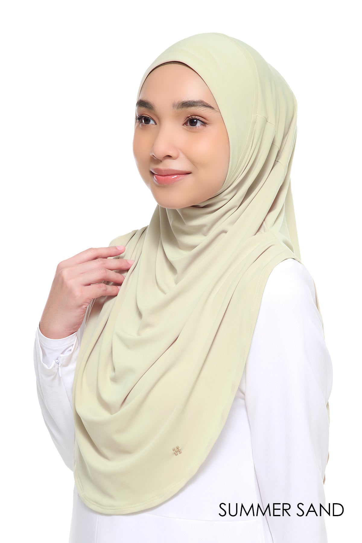Made fully from lycra to provide stretchy, comfortable hijab experience all day long. Designed with side seams to provide seamless front look. Decorated with Hegira pendant, giving contrast to the plain hijab.
