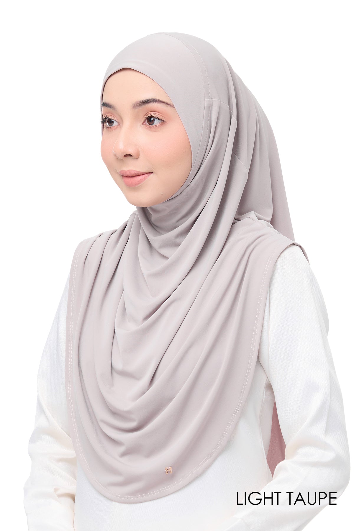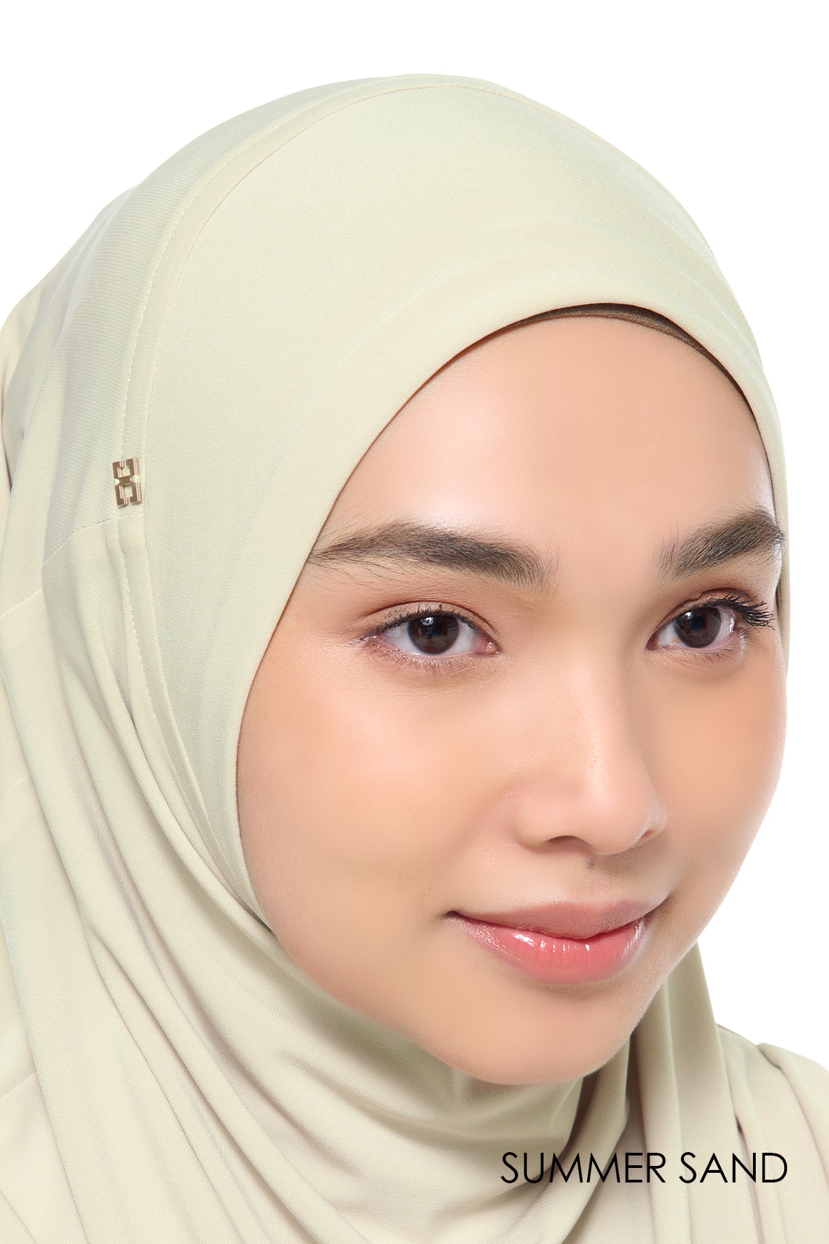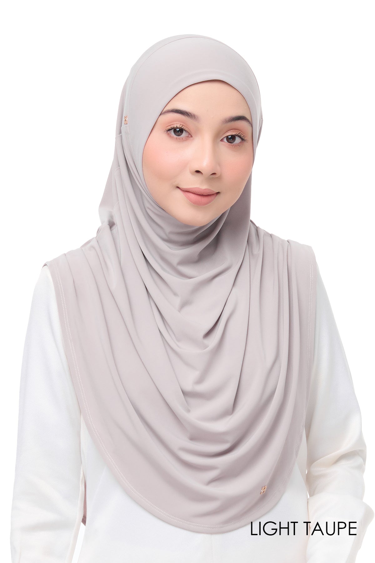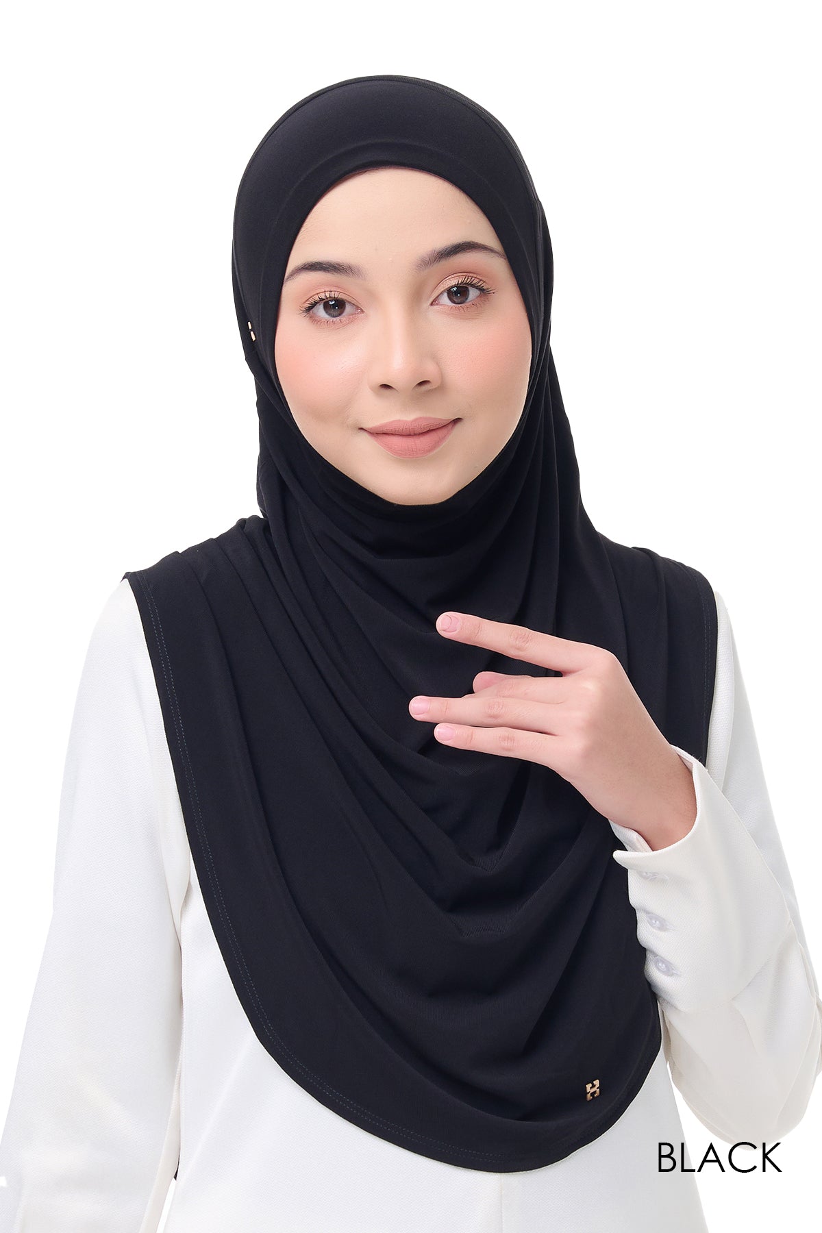 Made fully from lycra to provide stretchy, comfortable hijab experience all day long. Designed with side seams to provide seamless front look. Decorated with Hegira pendant, giving contrast to the plain hijab.