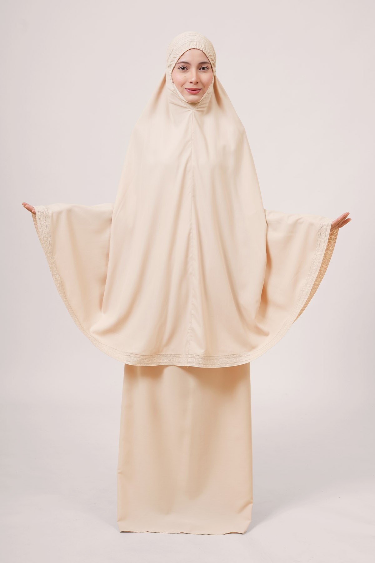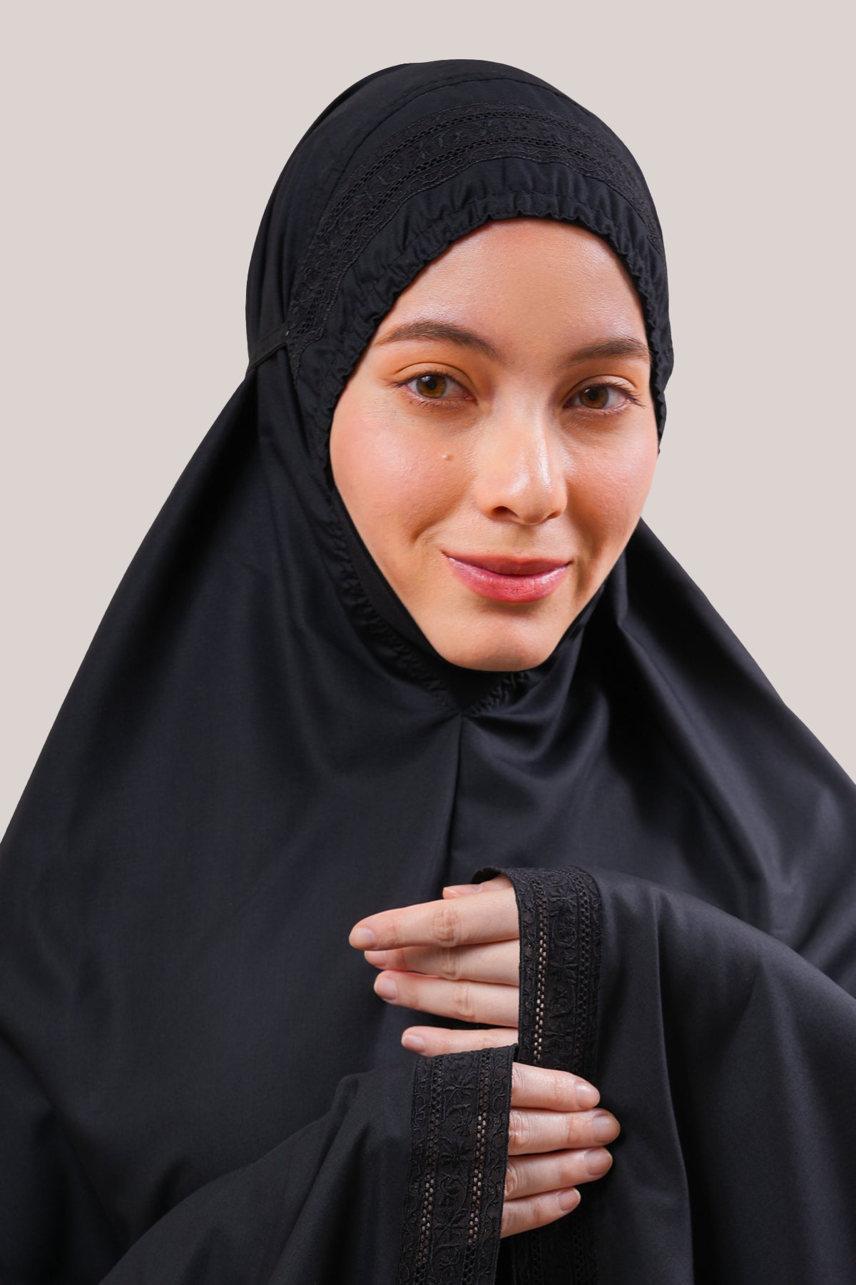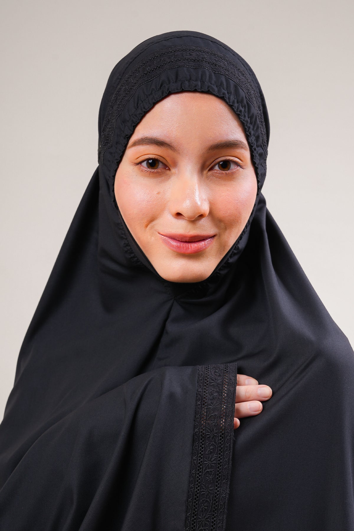 Made from Khadijah Basic Poplin V2, Signature Ayliz offers a lightweight and breathable feel with a cotton-like softness on the skin. The ITY chin lining stretches comfortably without losing shape, while the Classic padded headband ensures a snug fit without leaving marks. Designed with delicate cotton lace finishing and minimal maintenance needs.